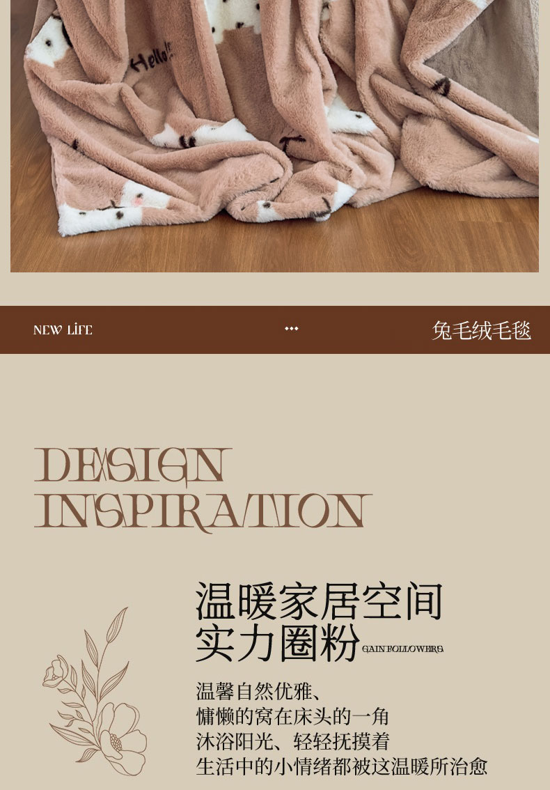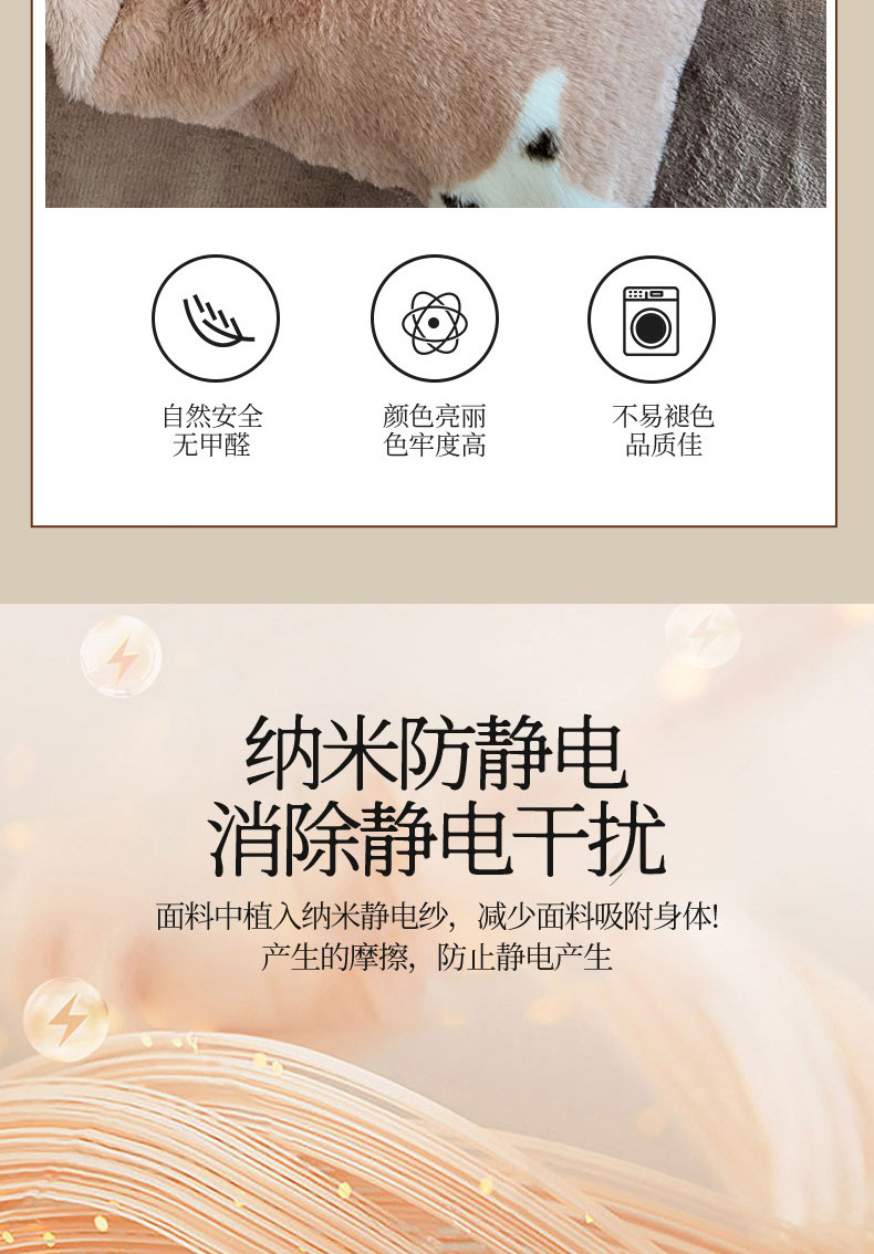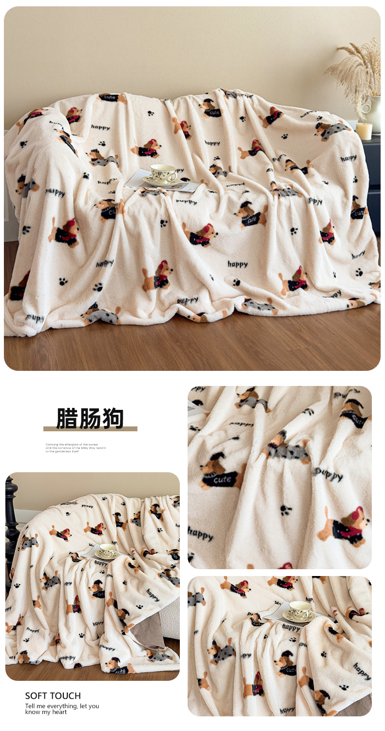 商品名称:璐维斯 2025新款A类兔毛绒双层多功能被套毯带拉链 卡通花卉牛奶绒毛毯秋冬保暖毯子盖毯 可爱狗