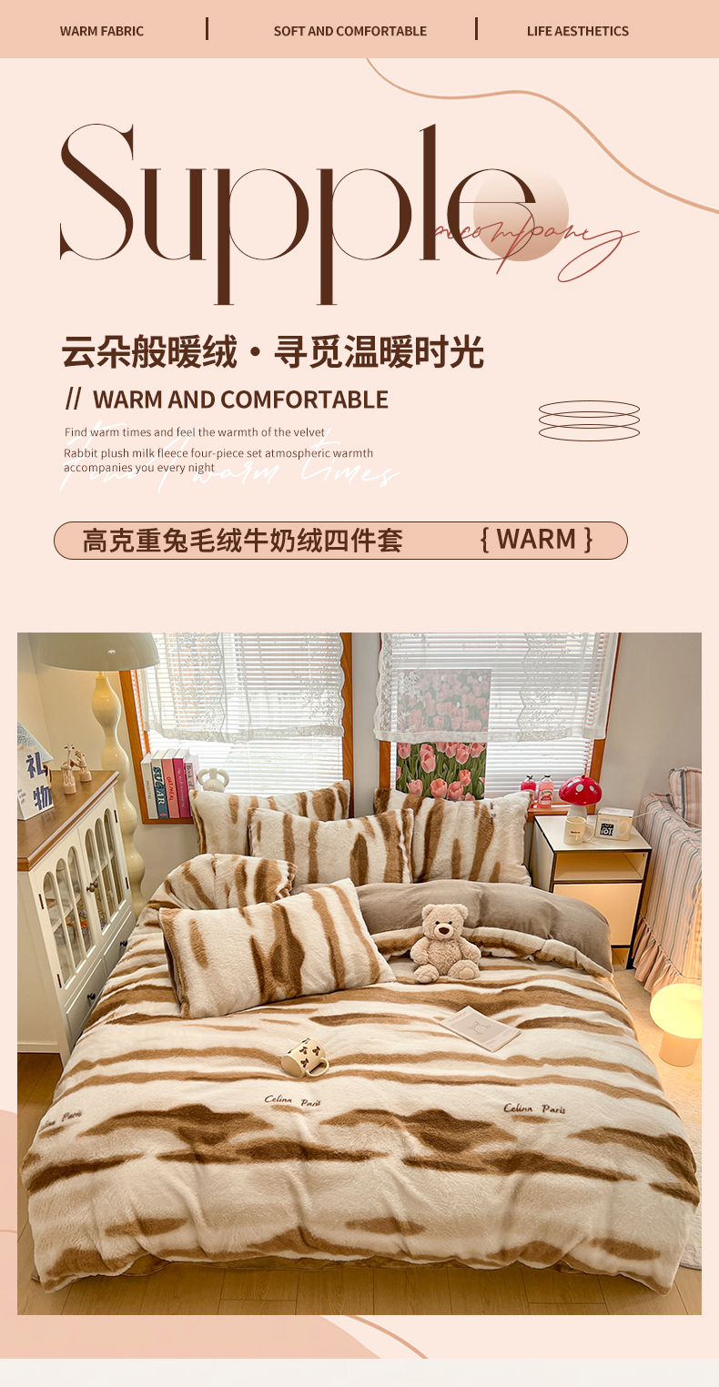当前位置: 91家纺网 > 商品网购 > 床品套件 > 四件套 > 其它四件套 > 妖妖家纺 2025新款加厚印花兔毛绒保暖四件套 奶油泡芙