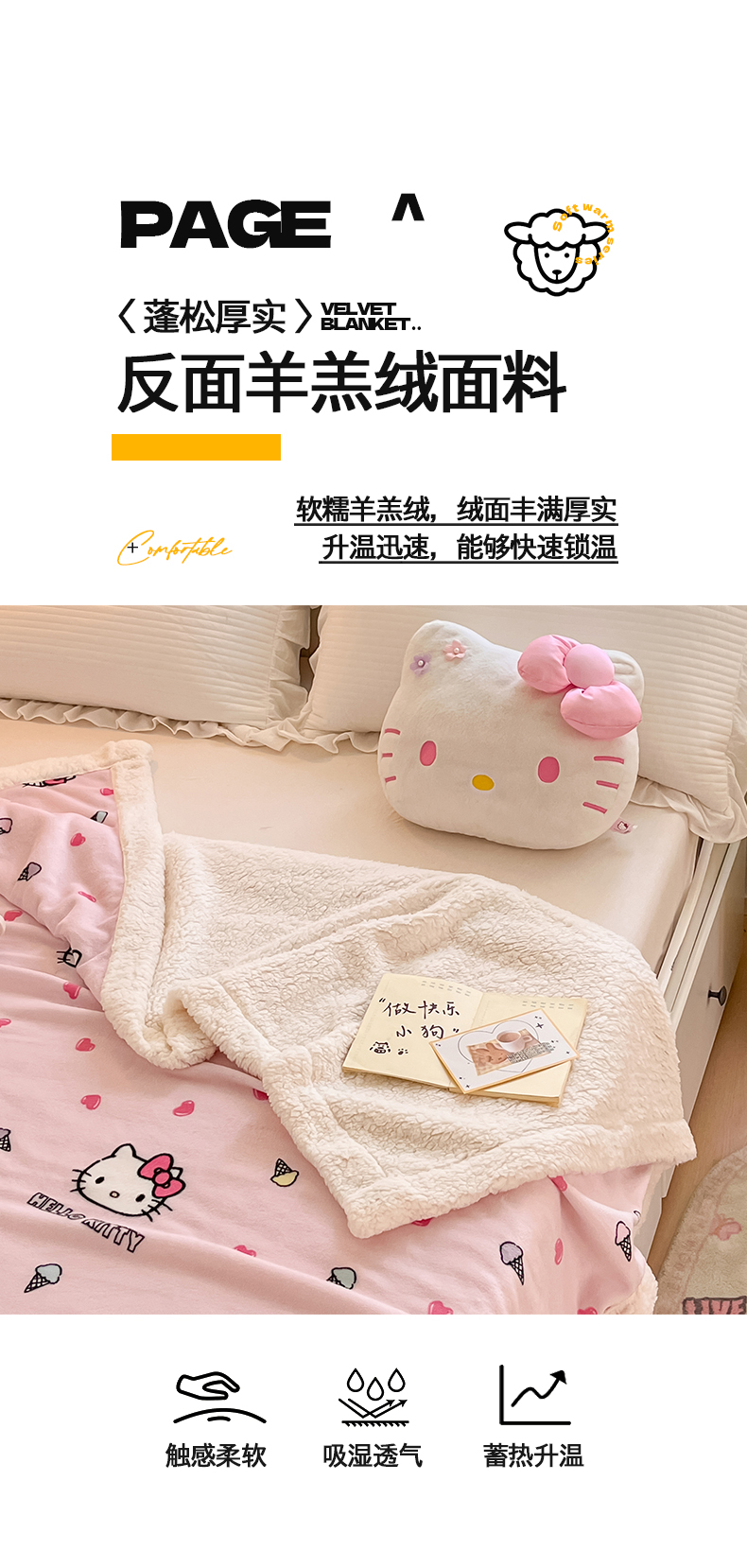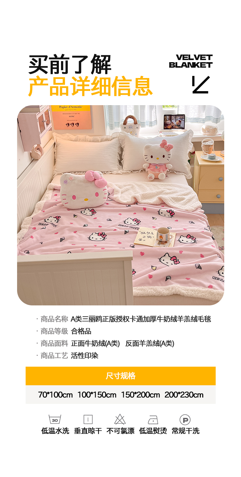 当前位置: 91家纺网 > 商品网购 > 床品套件 > 四件套 > 葡萄家 2025新款A类三丽鸥正版授权少女可爱卡通加厚牛奶绒羊羔绒多功能四季毛毯毯子 绒毛毯-MT三丽鸥甜筒KT粉