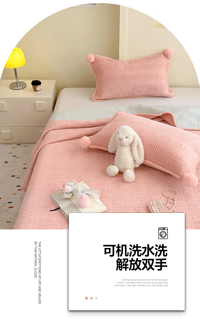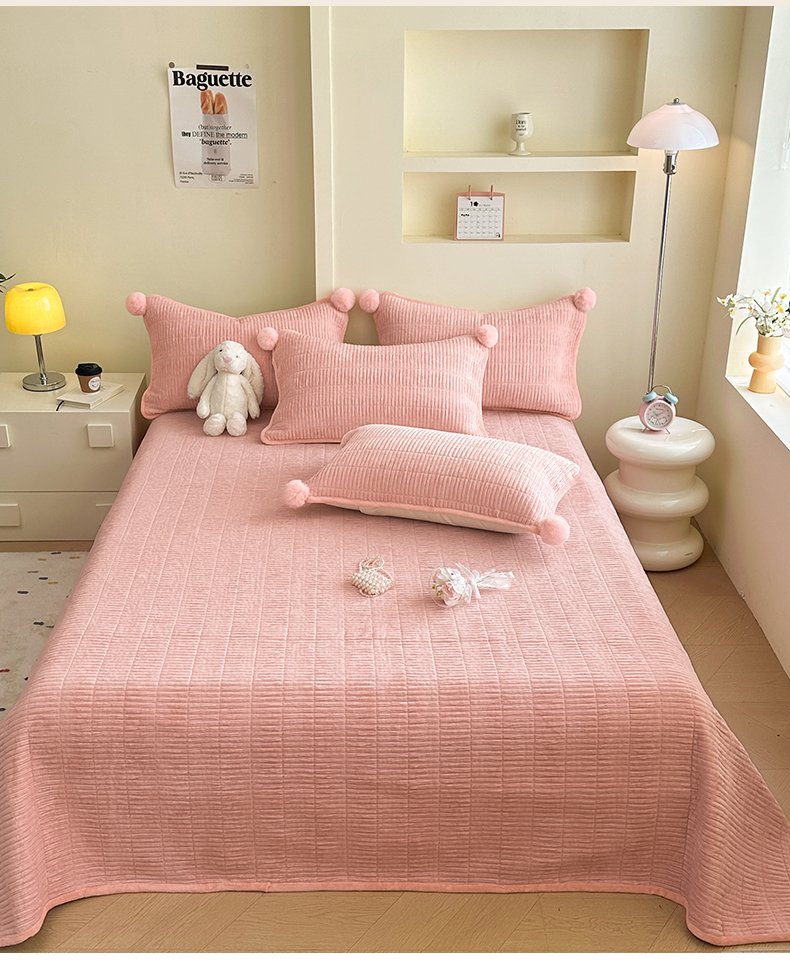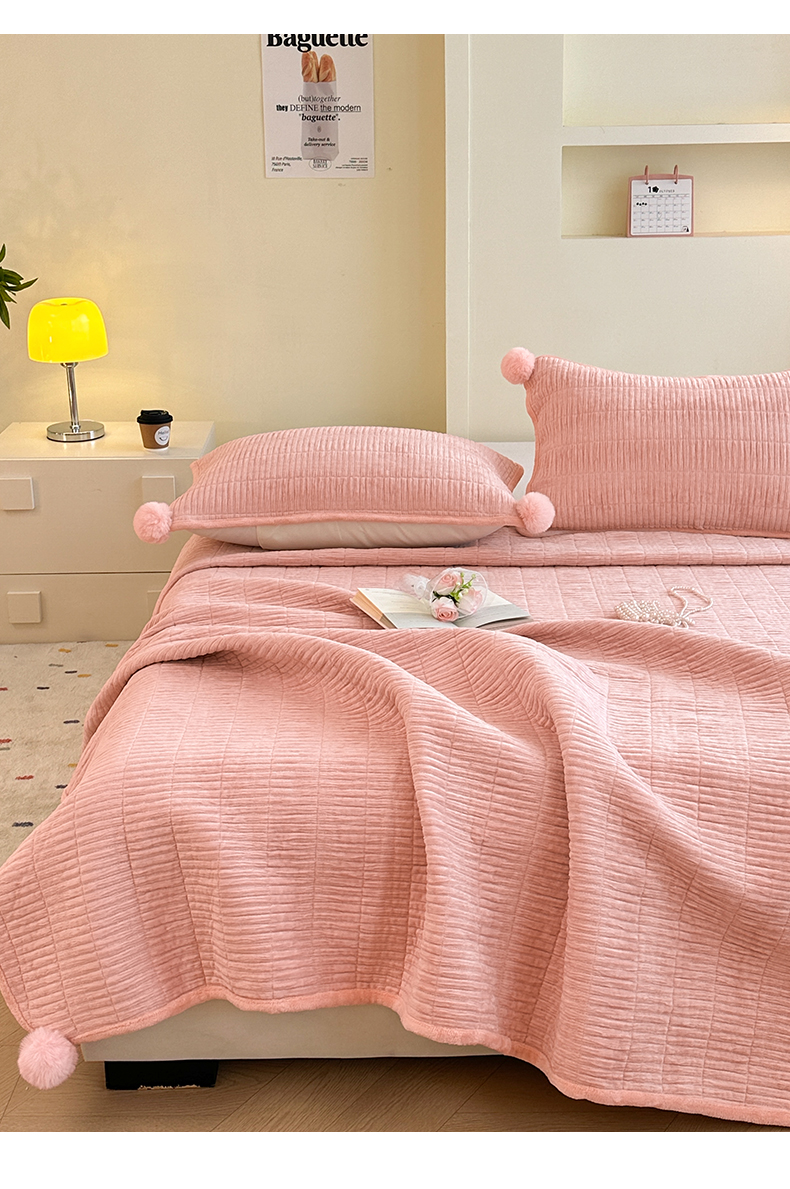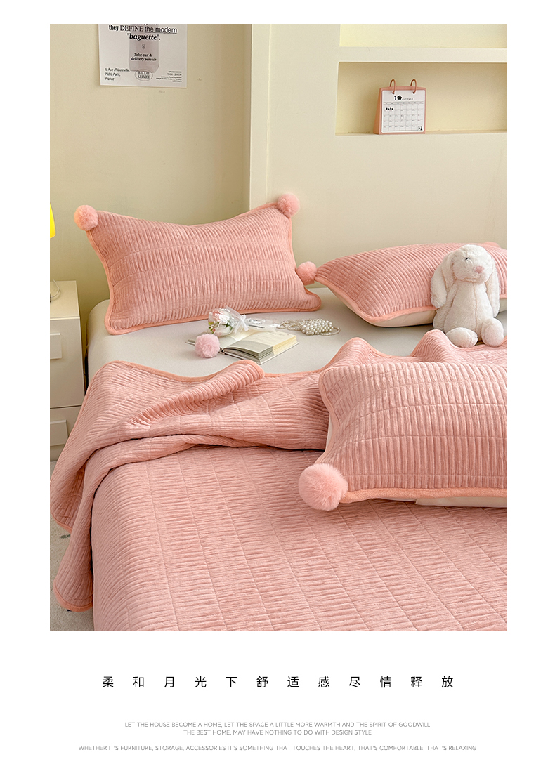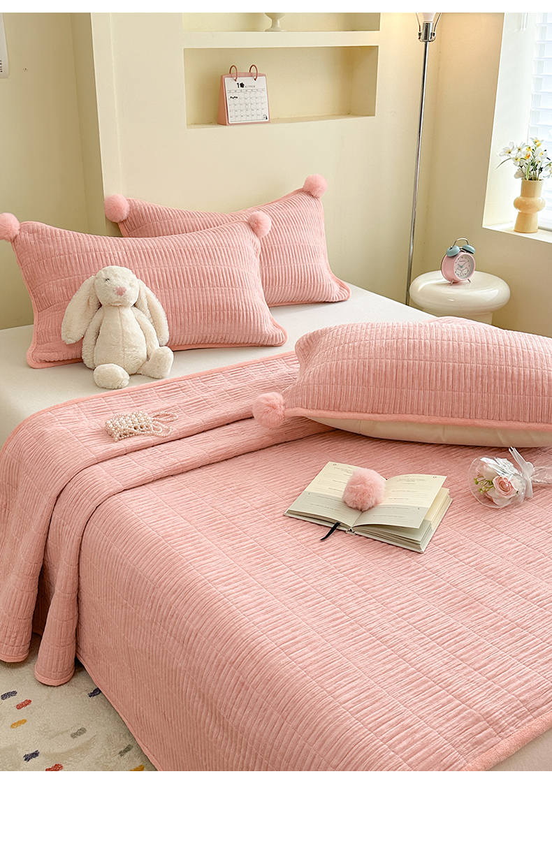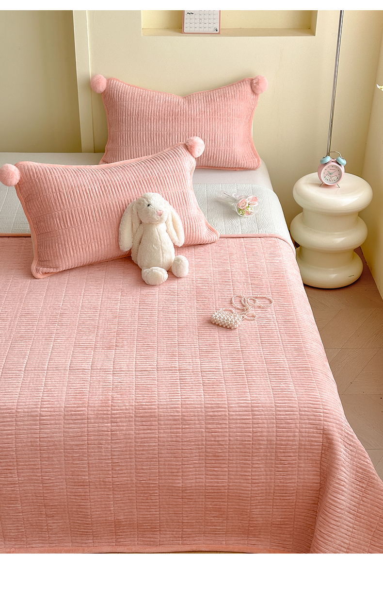 商品名称:寐居家纺 2025新款婴儿皱皱绒纯色床盖三件套 青岚-木槿粉