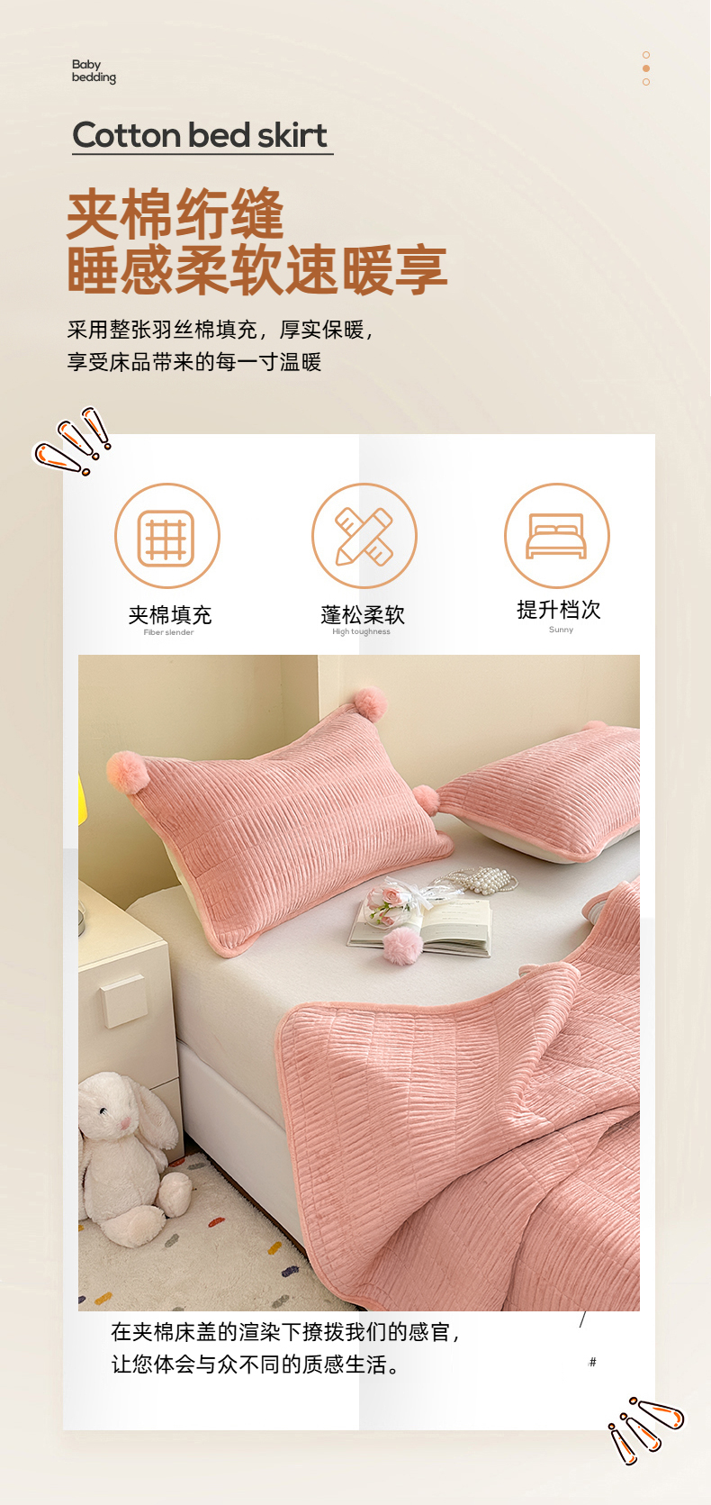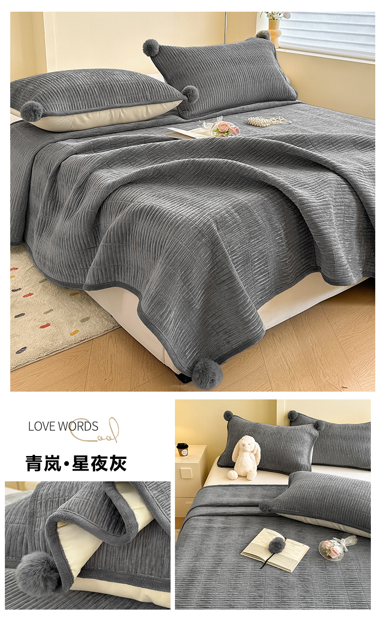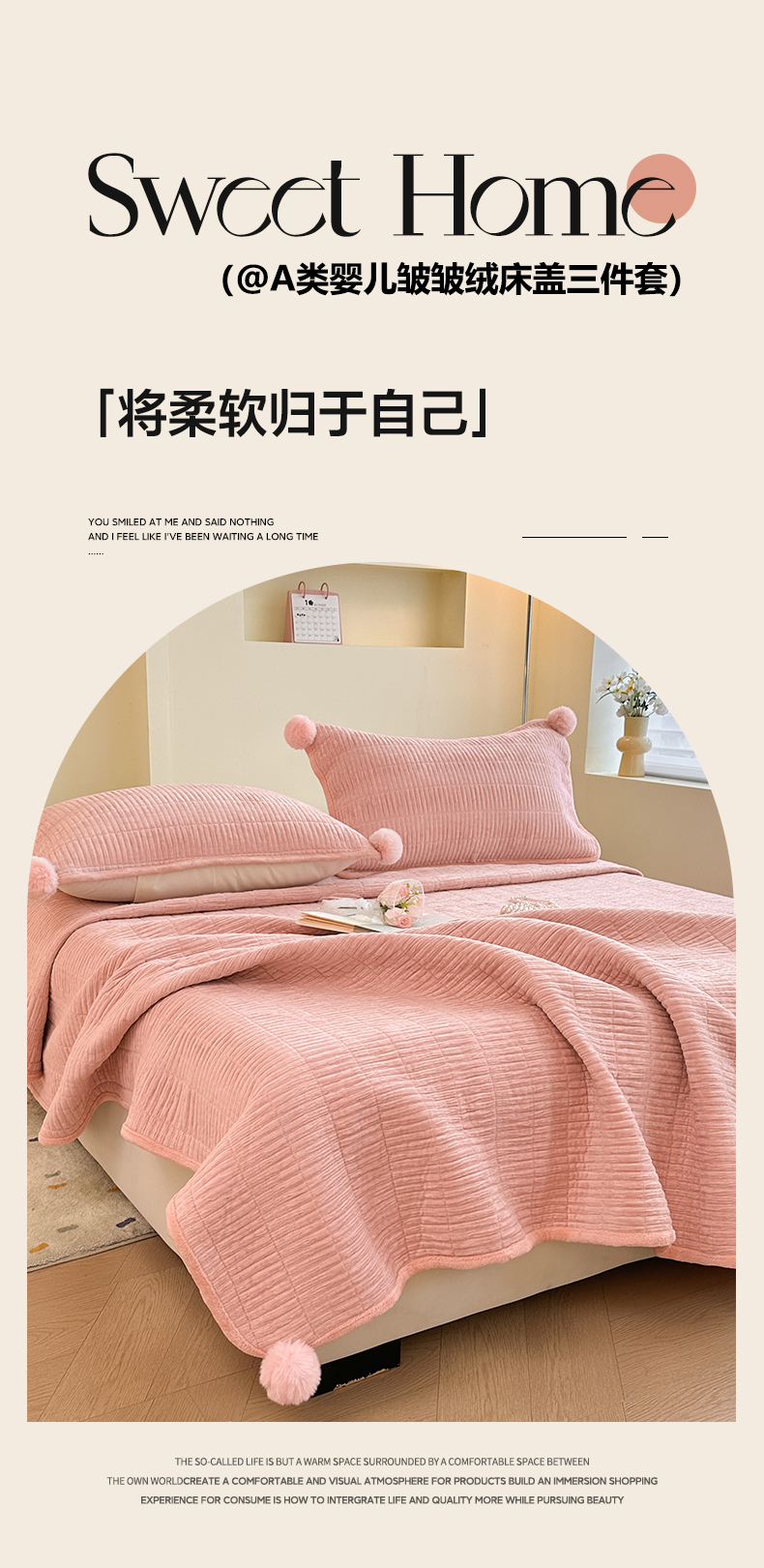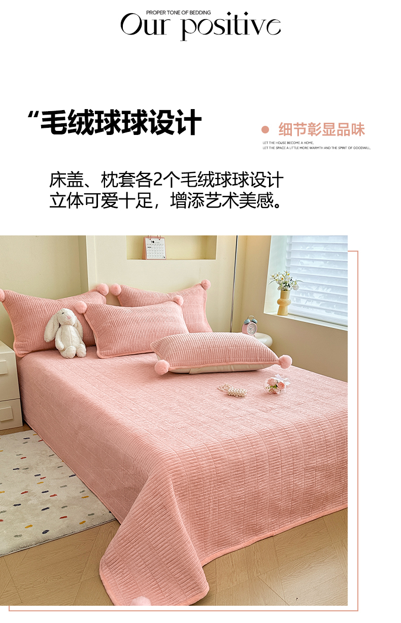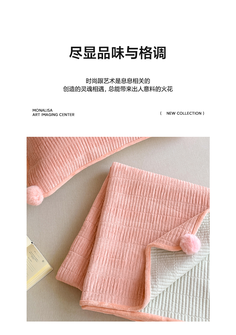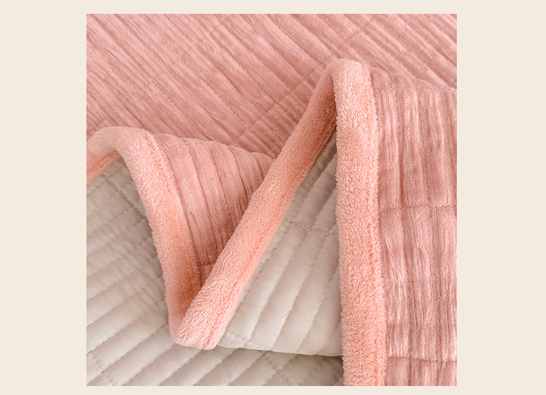 商品名称:寐居家纺 2025新款婴儿皱皱绒纯色床盖三件套 青岚-木槿粉