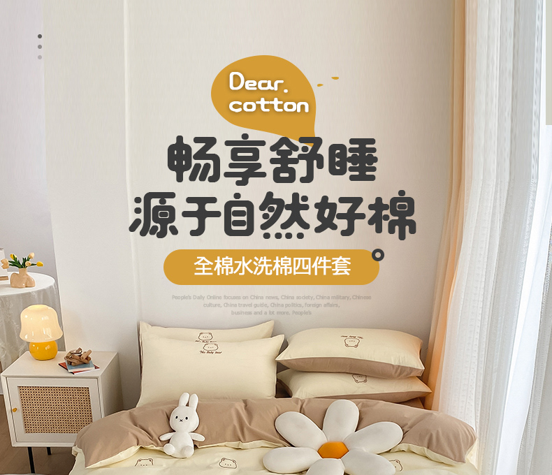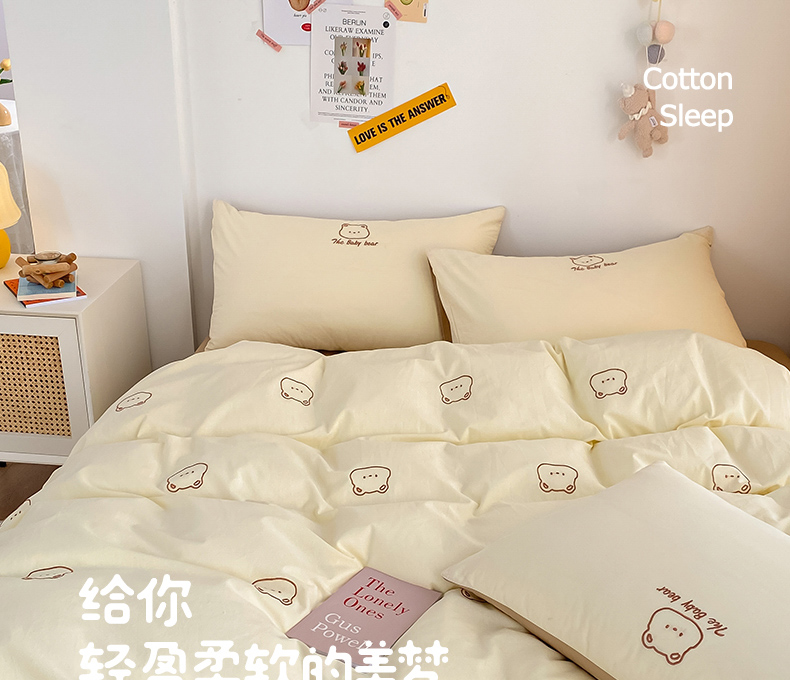 当前位置: 91家纺网 > 商品网购 > 床品套件 > 四件套 > 全棉普通四件套 > 琪格格纺织 2025新款40s全棉纯棉小熊绣花系列四件套 嘟嘟熊 卡其黄
