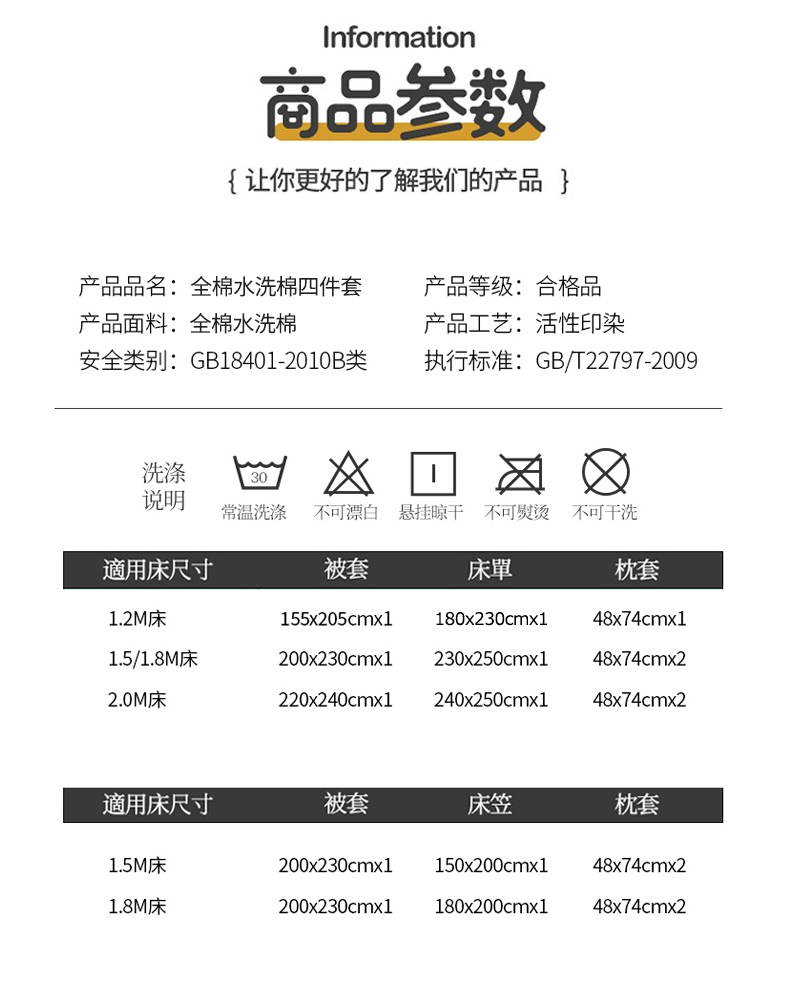 【床笠款】1.8四件套-被套200x230 | ¥135.00 |