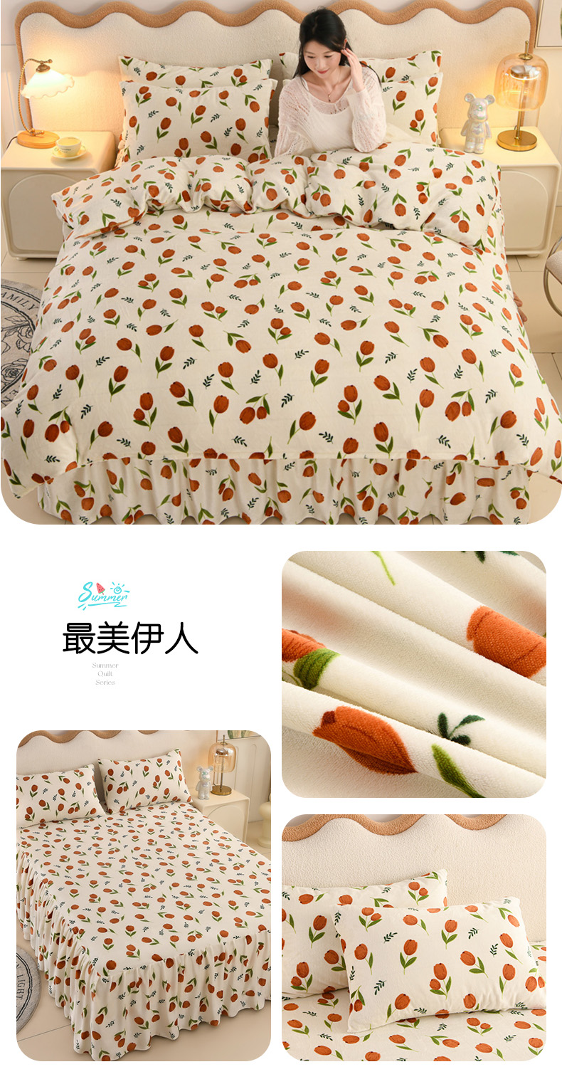 商品名称:圣靓 2025新款高克重牛奶绒四件套印花床裙款 最美伊人