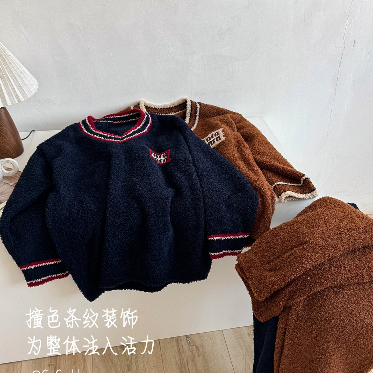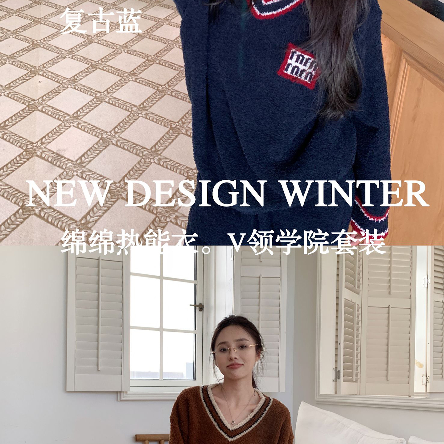 妍景家居生活馆 2025新款半边绒-V领学院套装 可可棕