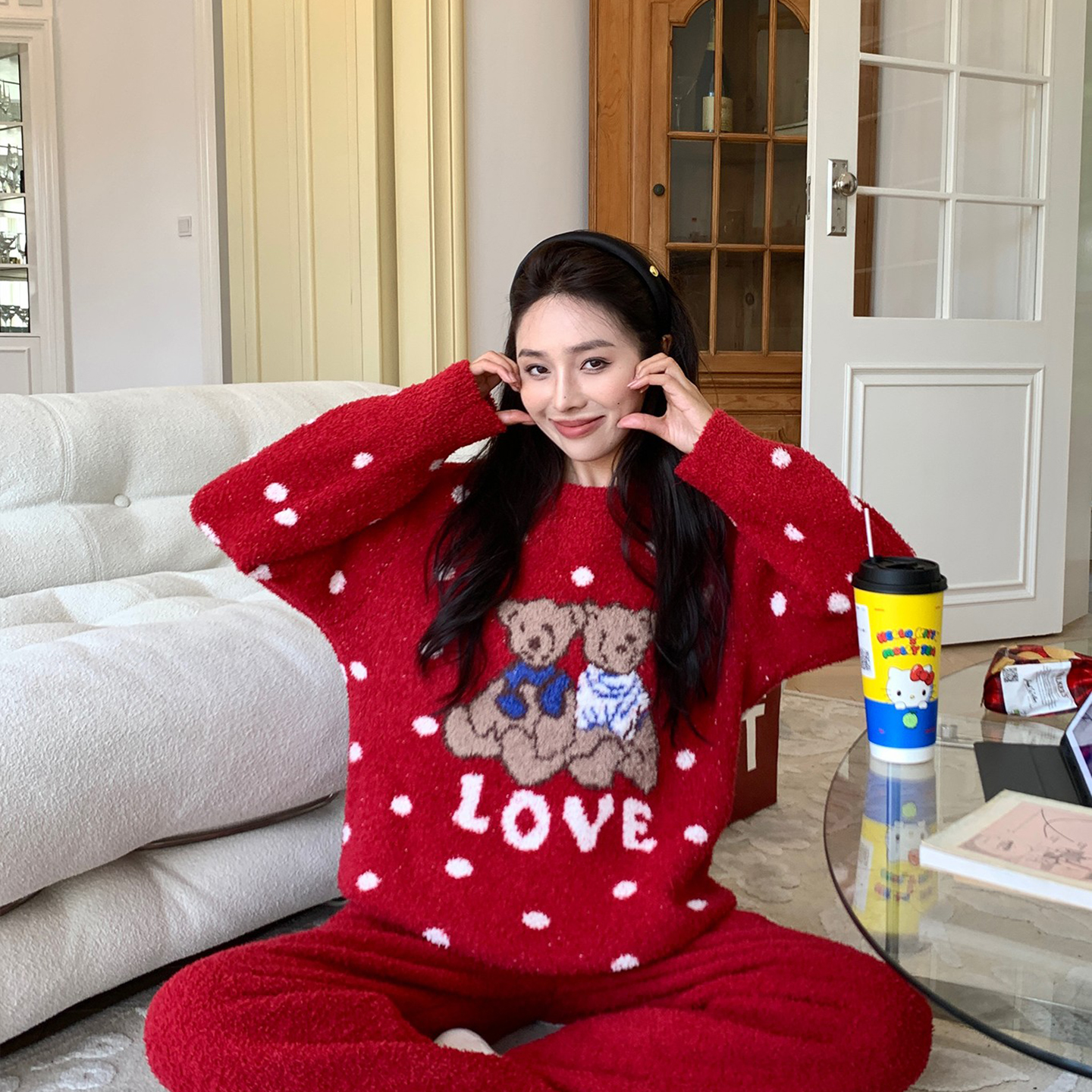 当前位置: 91家纺网 > 商品网购 > 居家日用 > 睡衣 > 妍景家居生活馆 2025新款半边绒-暖熊伙伴套装 奶米波点