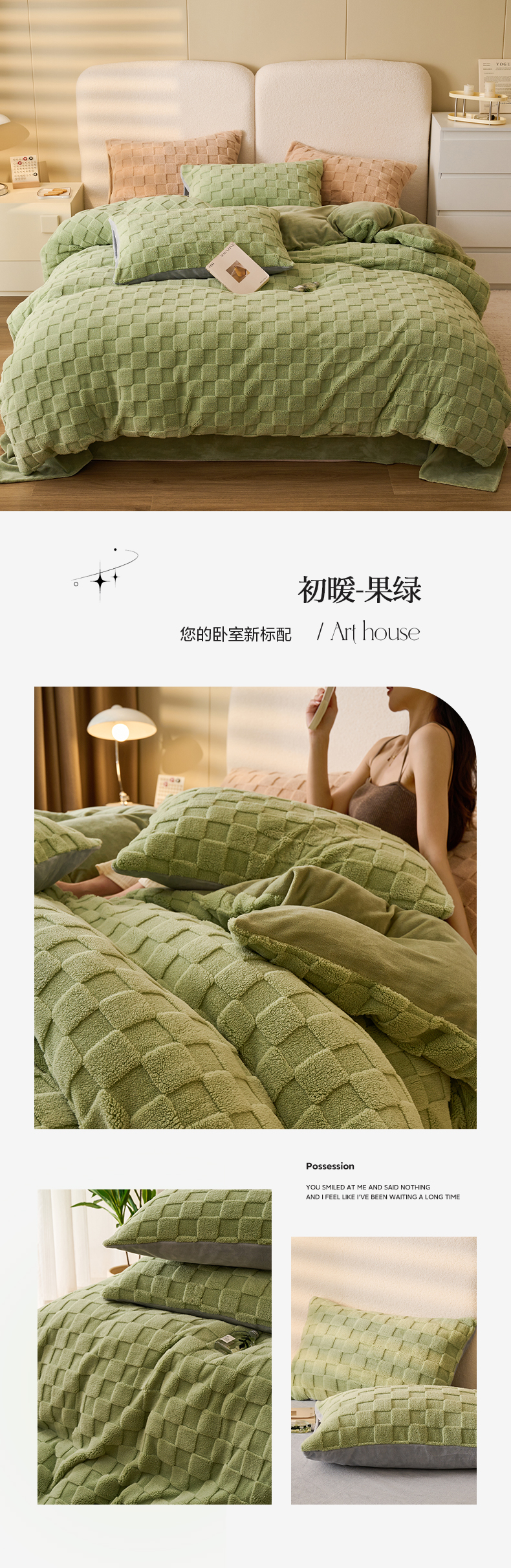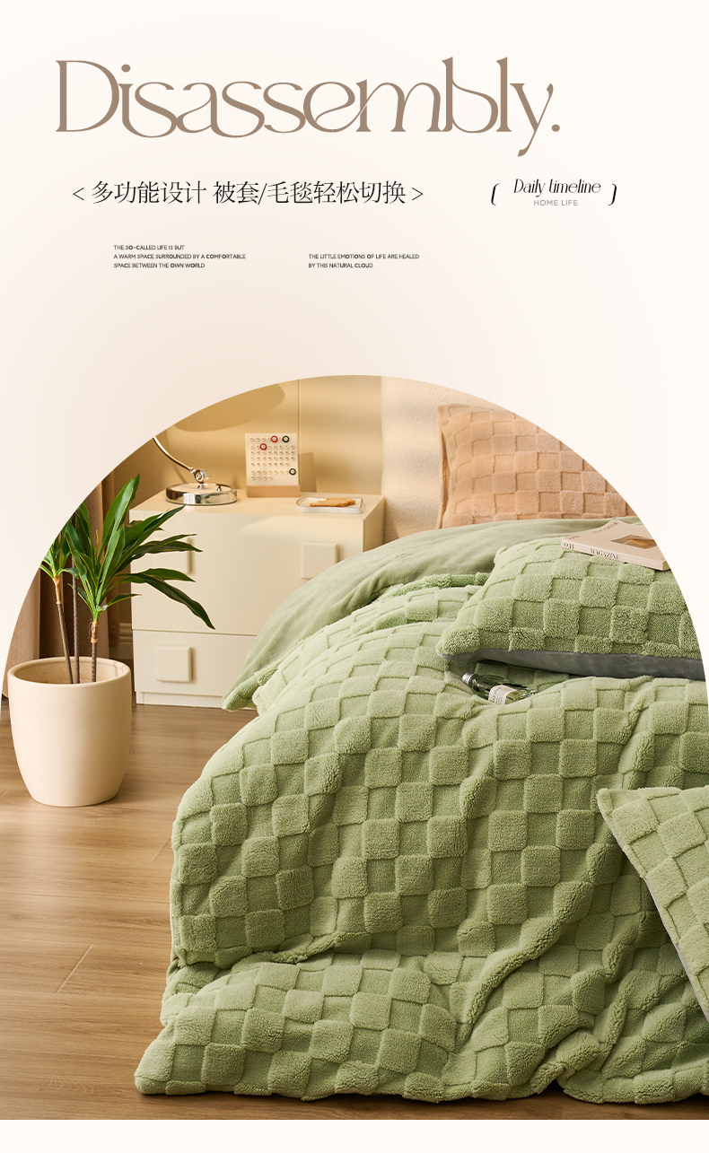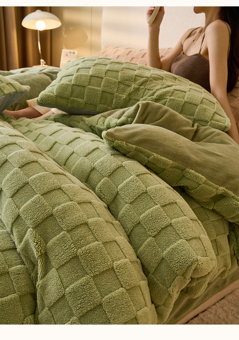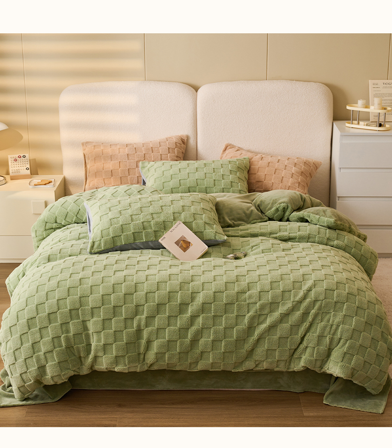 • 91家纺网 家纺一手货源 找家纺 晨曦家纺 2025新款加厚高克重230克塔芙绒牛奶绒单被套-初暖系列 初暖-果绿