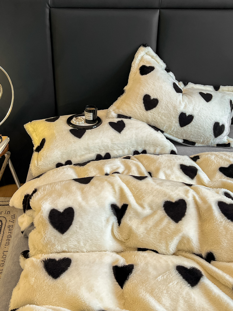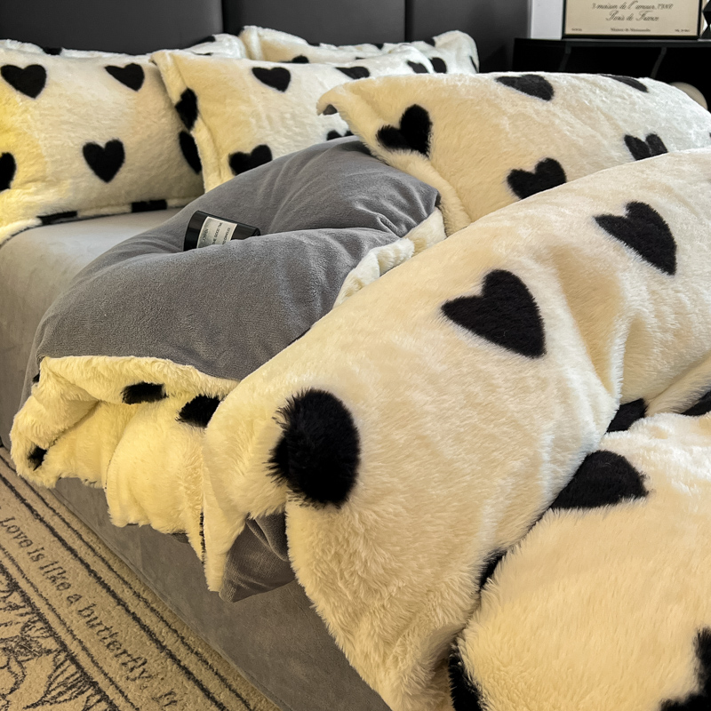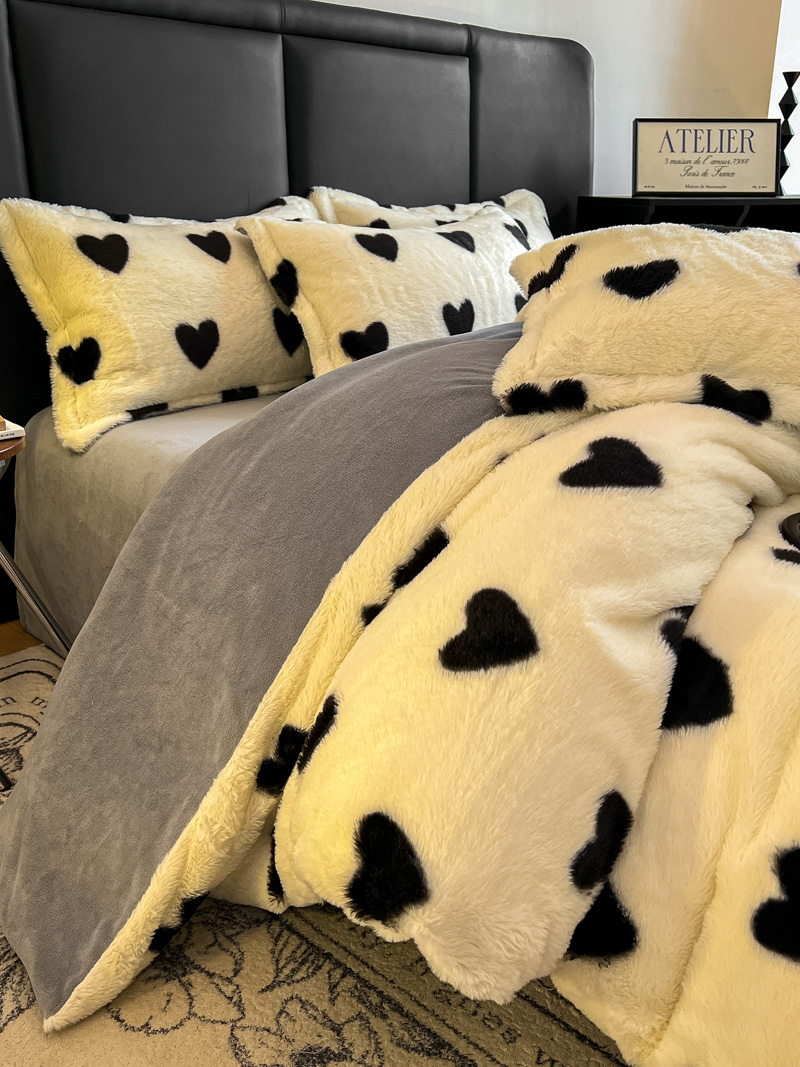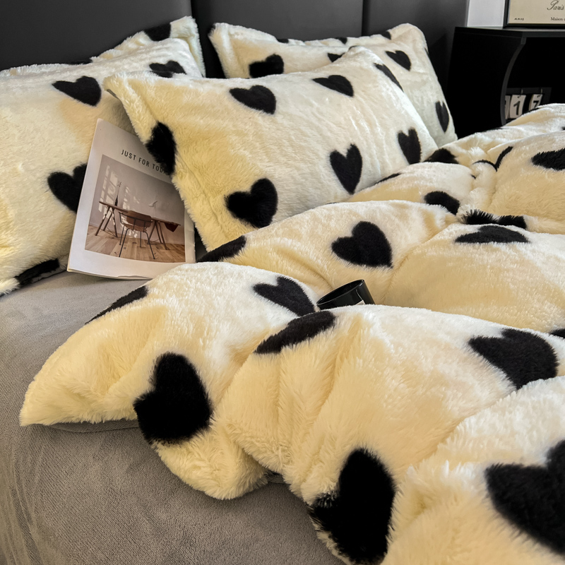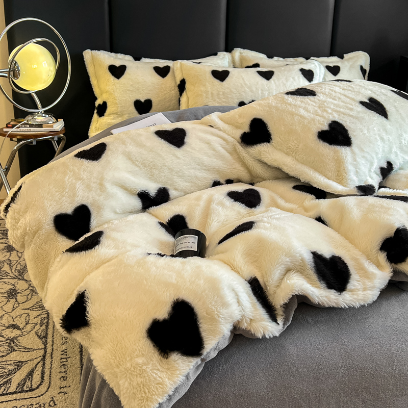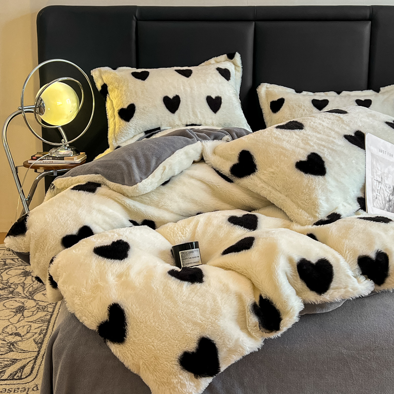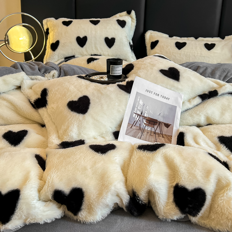 一比一家纺 2025新款亲肤舒适兔毛绒兔兔绒牛奶绒四件套 爱心