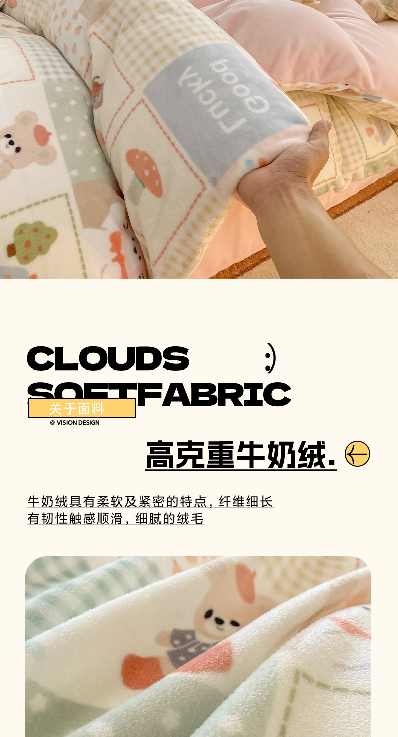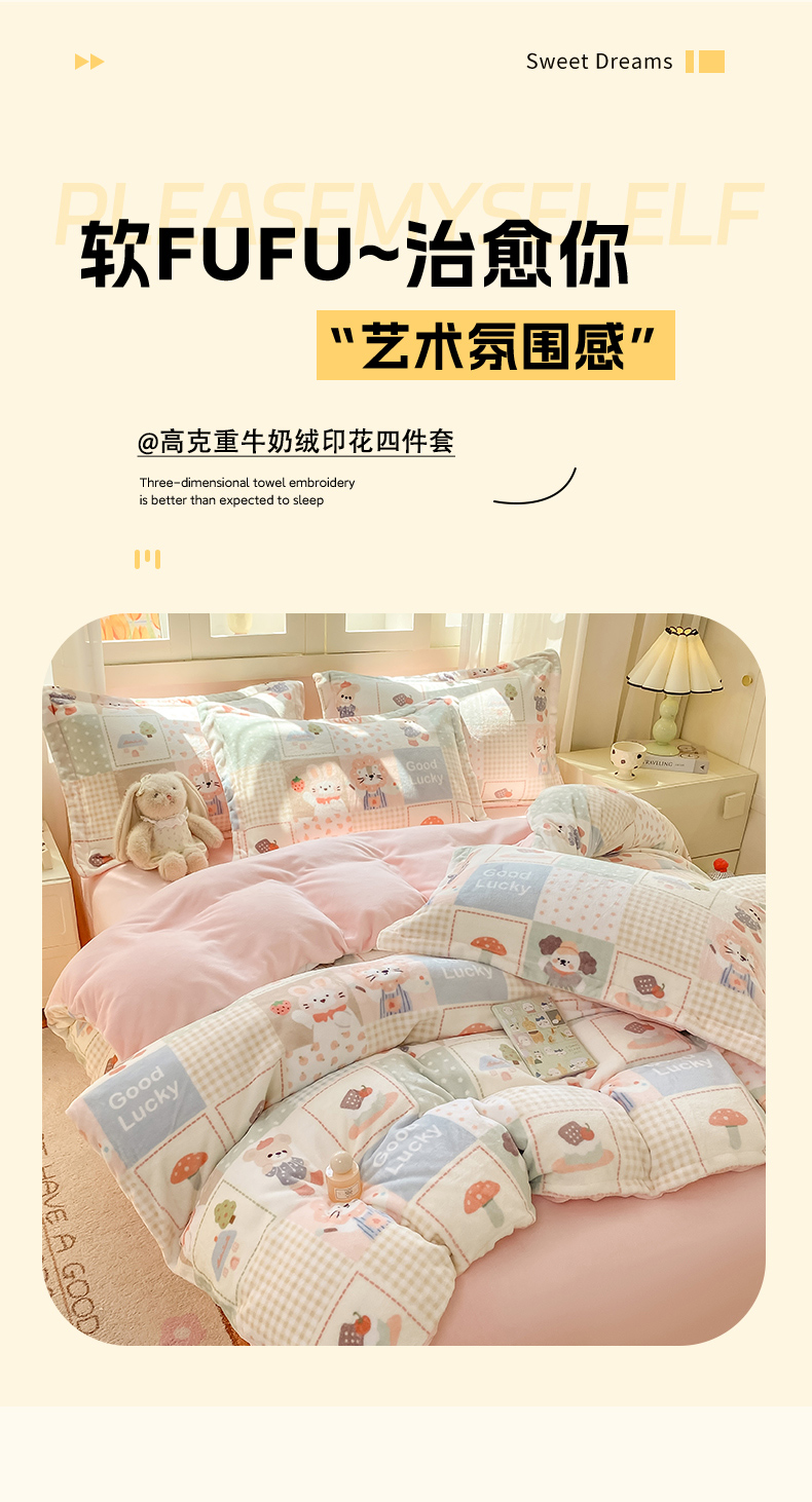 商品名称:红日子纺织品 2025新款高克重牛奶绒印花四件套 字母熊
