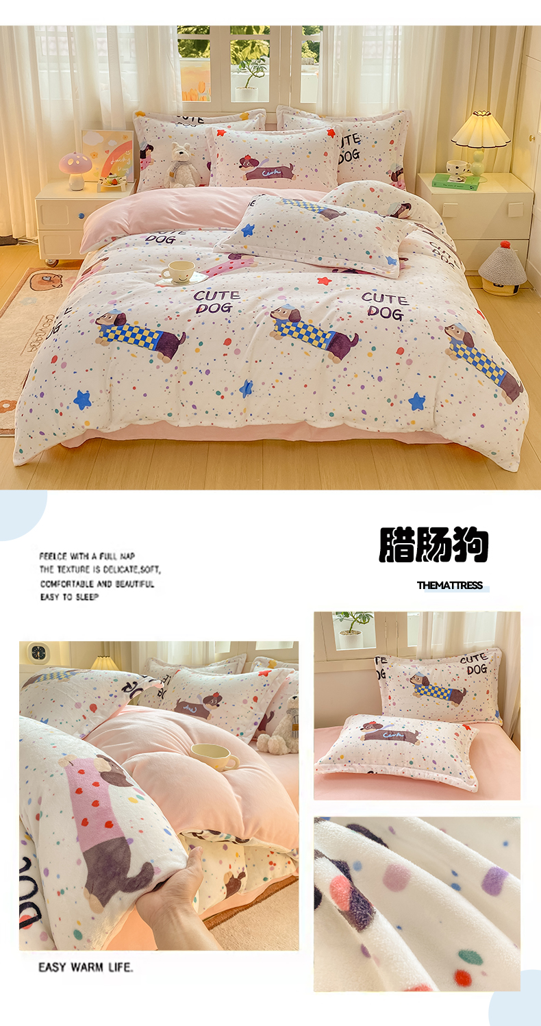 (总)红日子纺织品 2025新款高克重牛奶绒印花四件套,爱情小熊,德尔慧,动物派对,花儿与龙,花海,卡皮巴拉,可爱草莓,缤纷乐园,快乐小狗,拉咕咕,腊肠狗,露营狗,漫天繁星,三小只,幸运樱桃,熊可可,樱桃猫,字母熊