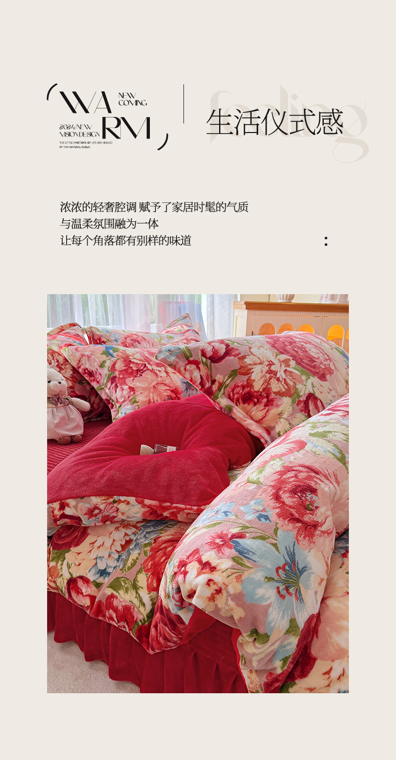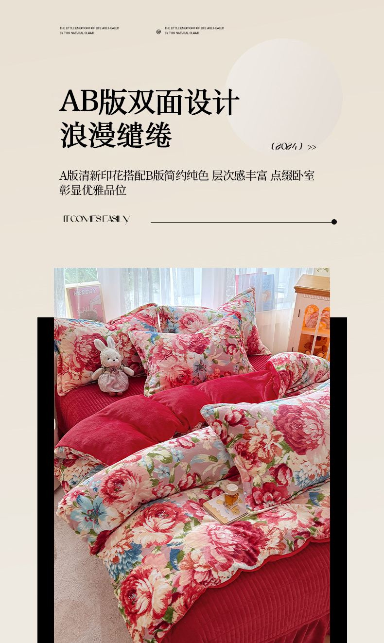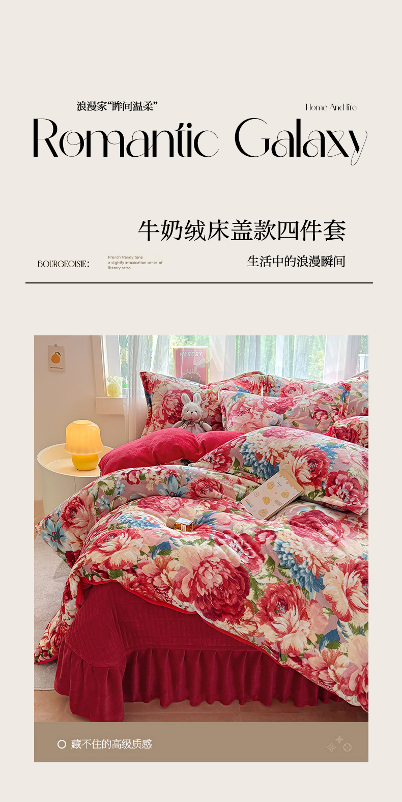 当前位置: 91家纺网 > 商品网购 > 床品套件 > 四件套 > 牛奶绒四件套 > 鸿羽樱家纺《原伊菲晓》 2025新款花仙子系列印花牛奶绒床盖炕垫炕盖四件套-云裳 云裳-牡丹倾城红
