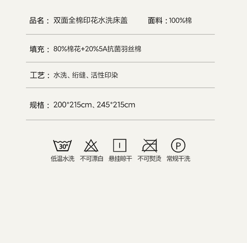 商品名称:(总)沐纯家居 2025新款跑量款双面纯棉印花水洗床盖