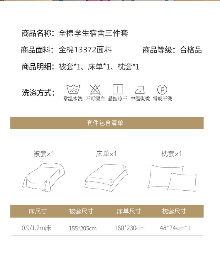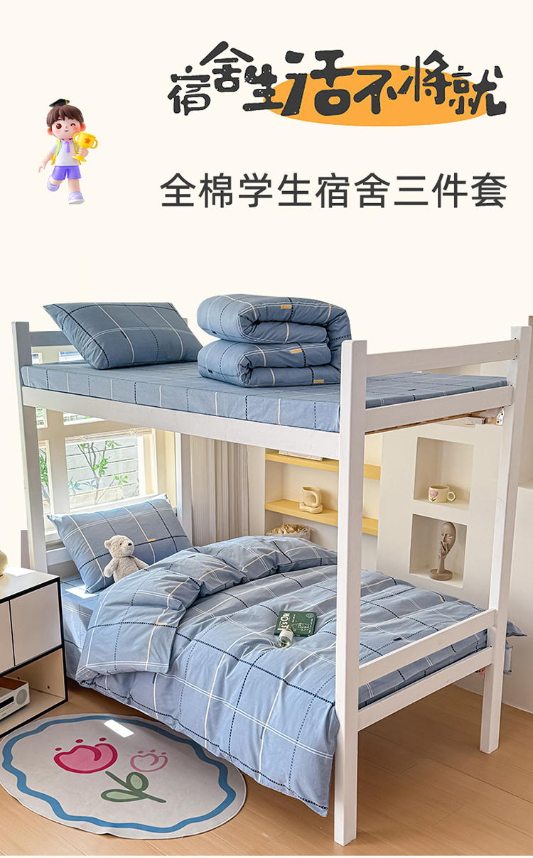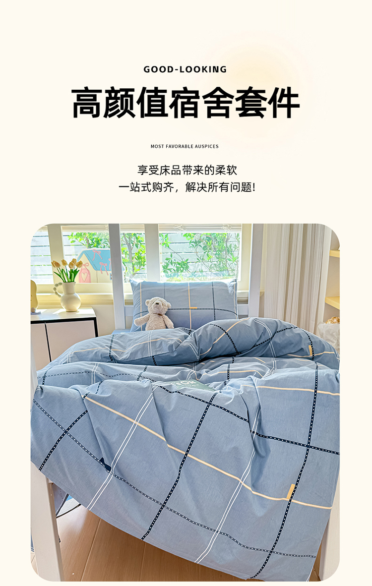 (总)【苏东来】2025简约13372纯棉全棉学生三四件套宿舍上下铺全棉纯棉格子印花三件套件单品被套床单枕套学生季