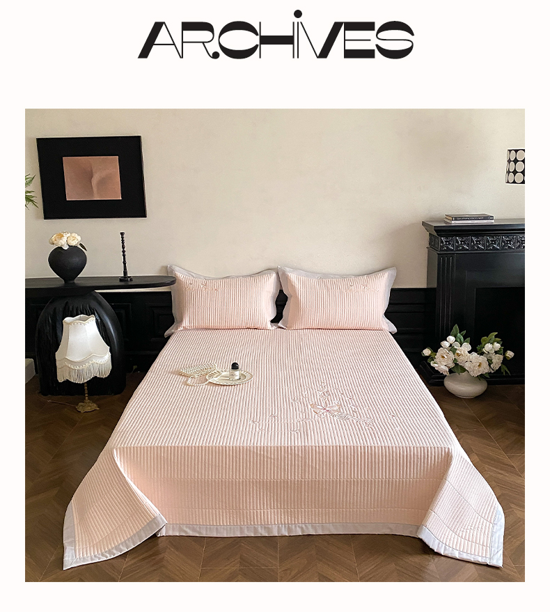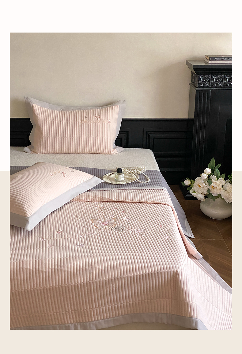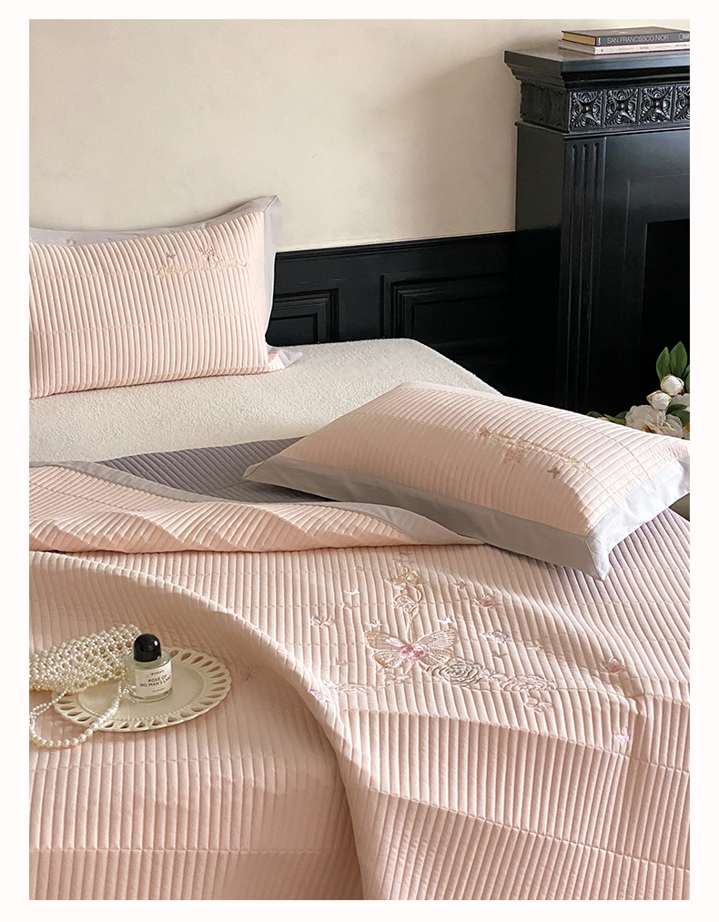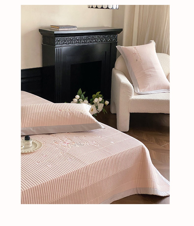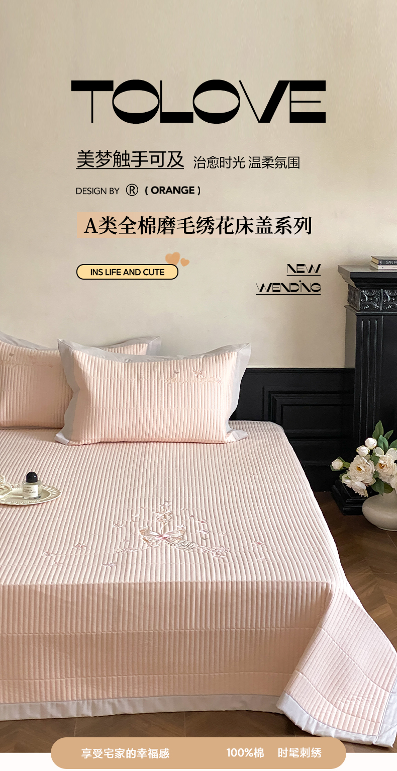 由有家居 2025新品A类50S双股全棉磨毛绣花床盖三件套 晚意粉