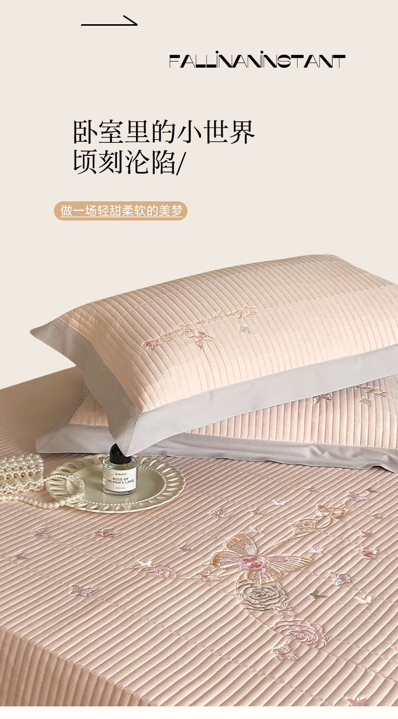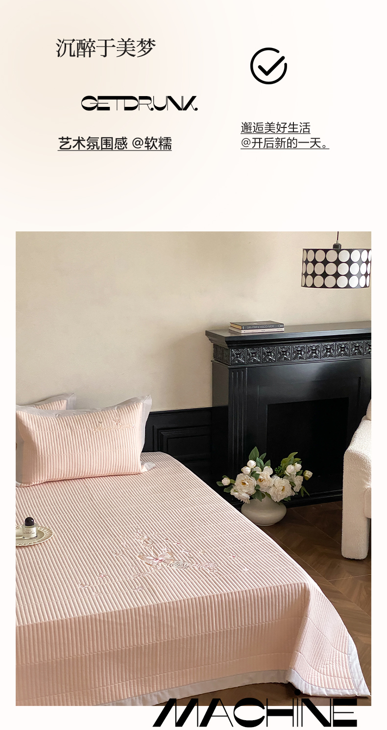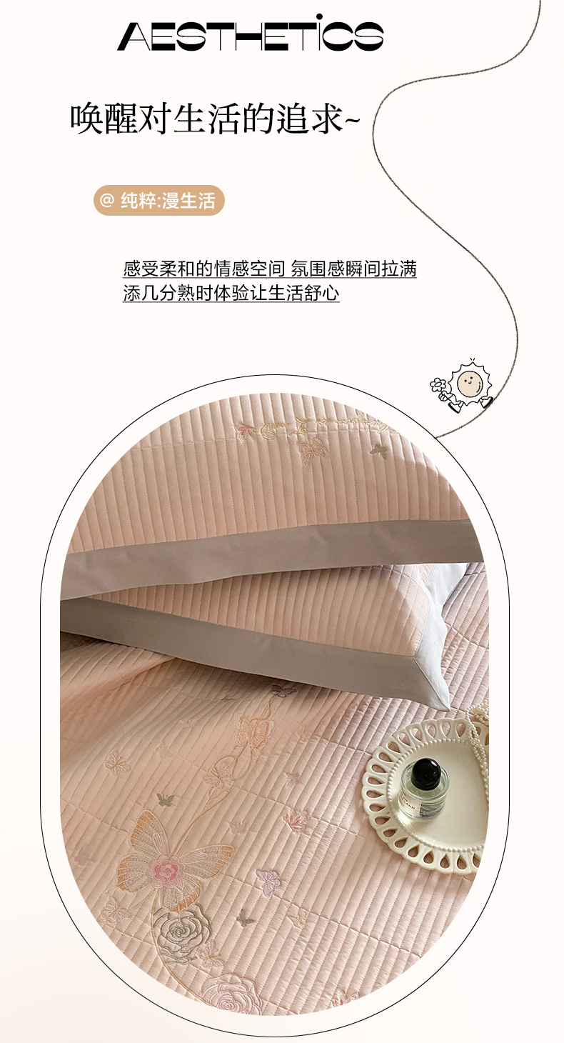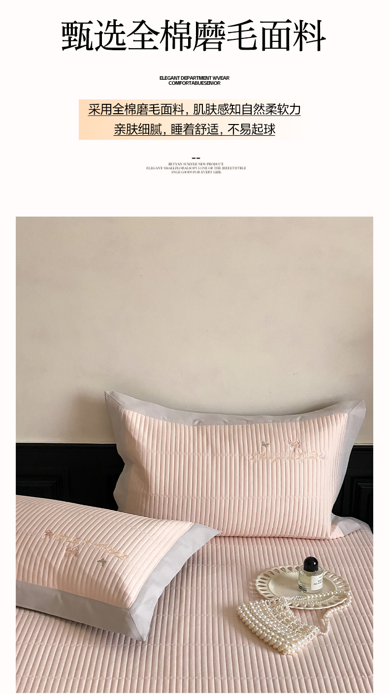 商品名称:由有家居 2025新品A类50S双股全棉磨毛绣花床盖三件套 晚意粉