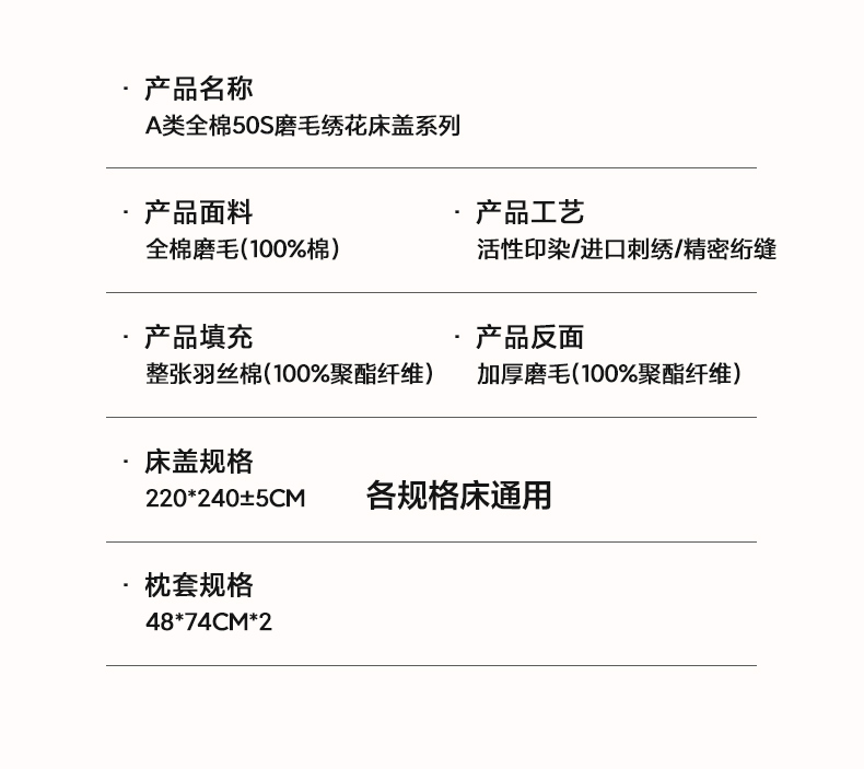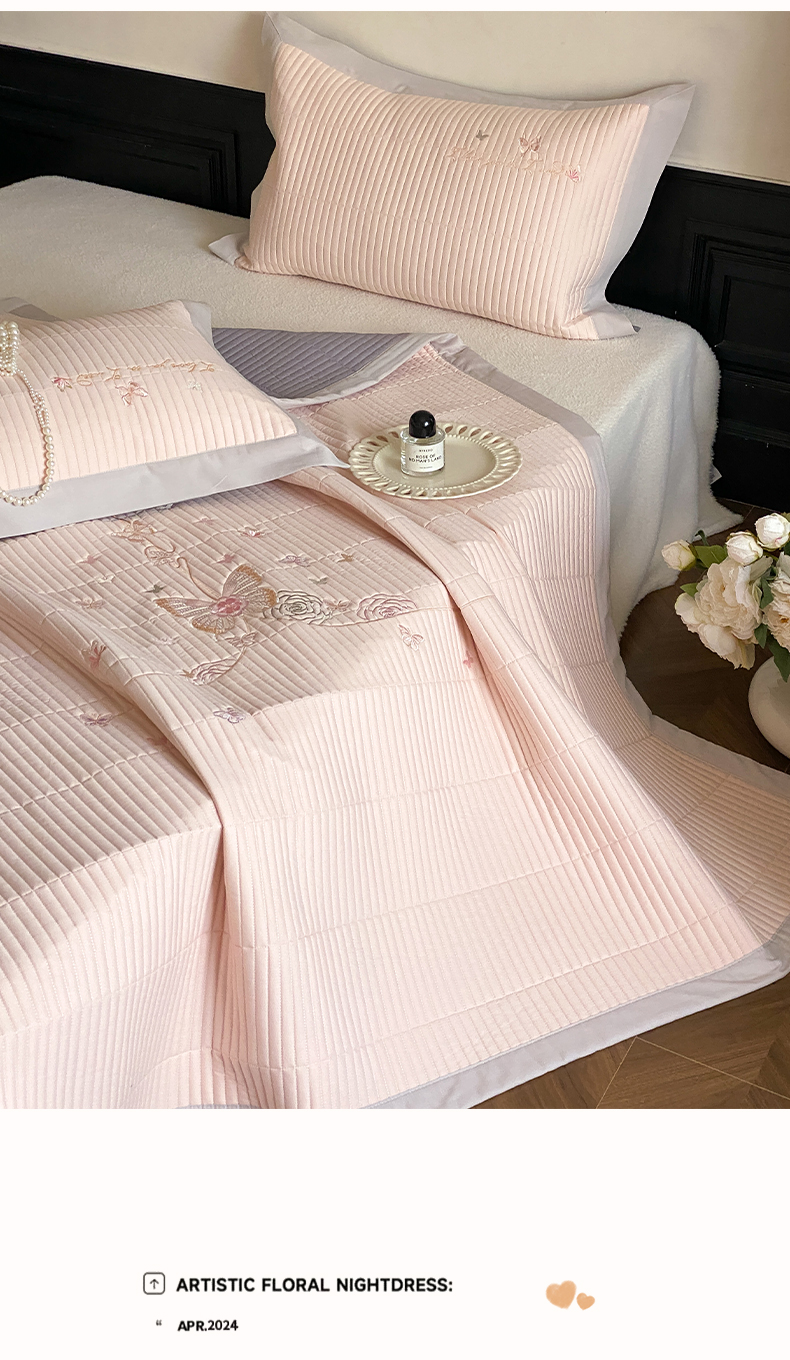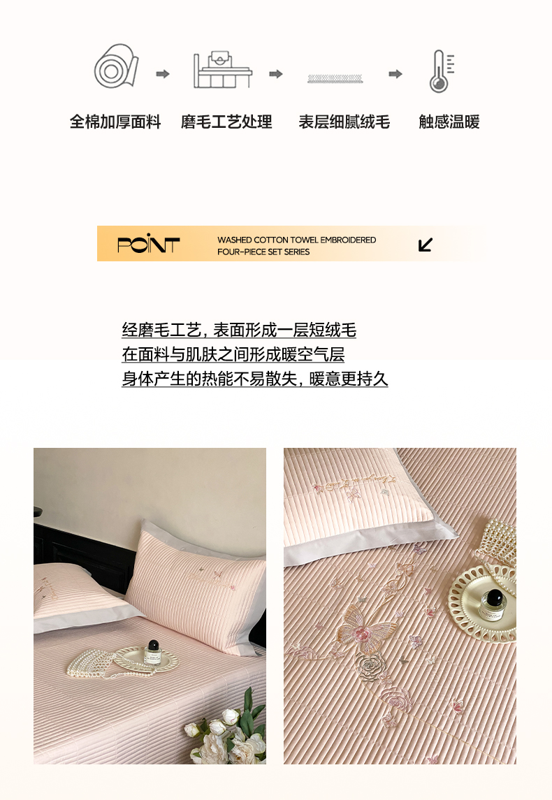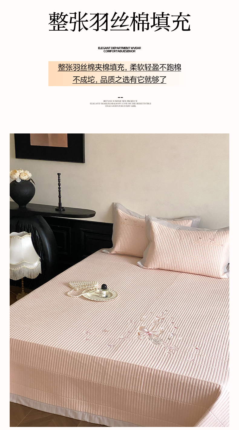 商品名称:由有家居 2025新品A类50S双股全棉磨毛绣花床盖三件套 晚意粉