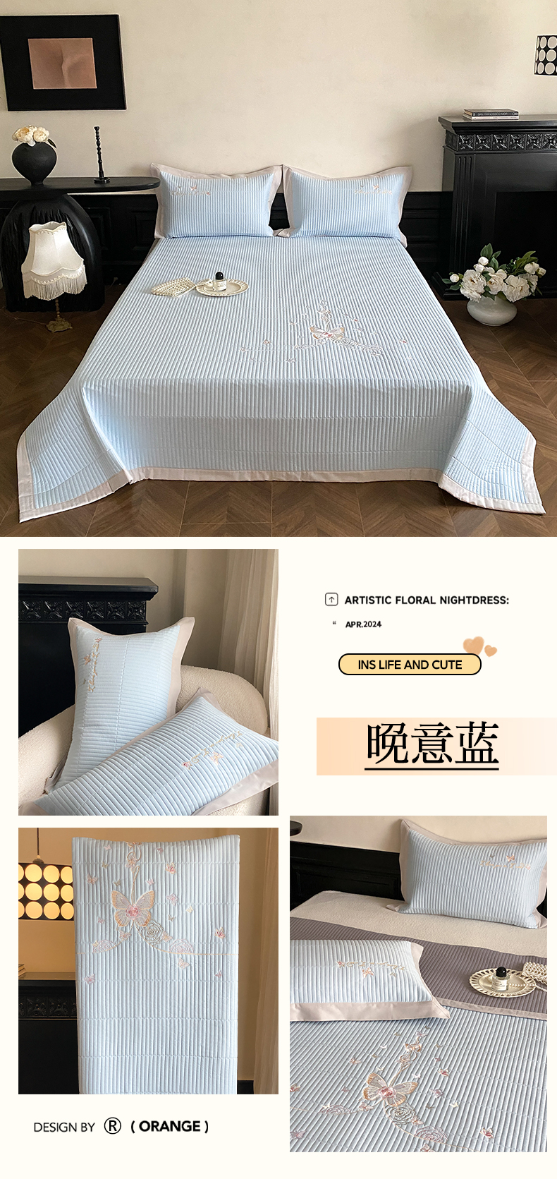 (总)由有家居 2025新款7A级高精密A类抗菌色织提花进口刺绣冰丝凉席-蝶影,蝶影-灰,蝶影-粉,蝶影-绿,蝶影-浅蓝,蝶影-香槟