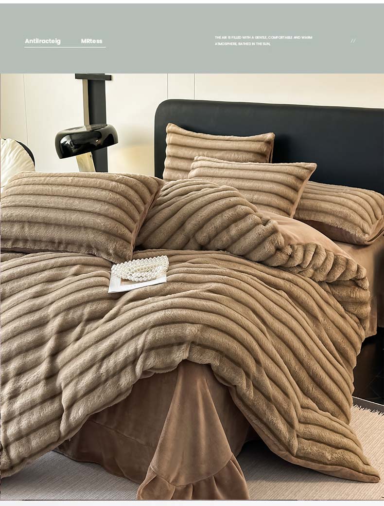 当前位置: 91家纺网 > 商品网购 > 床品套件 > 四件套 > 兔毛绒四件套 > 乐窝家纺仓储 2025新款高端定制加厚抽条兔毛床裙款四件套美拉德支持跨境外贸 优雅紫