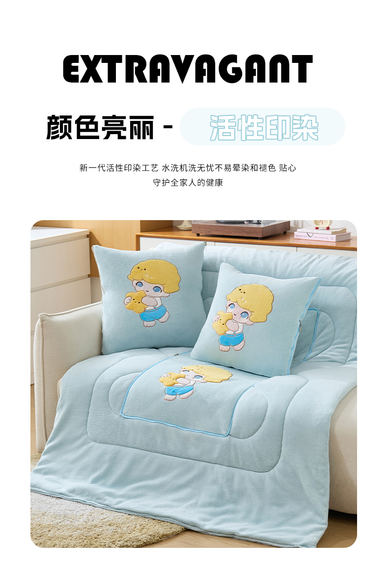 (总)金喜 2025新款高克重牛奶绒贴布卡通抱枕沙发靠枕午睡盖毯被绣萌趣男孩momo款,组合图仅供参考不可下单,秋波蓝,香芋紫,艾青绿,鸽子灰,蔷薇粉