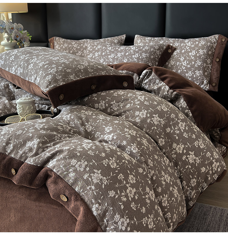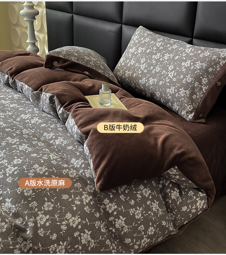 吾诺家居 2025新款水洗原麻牛奶绒纽扣款四件套 花梦