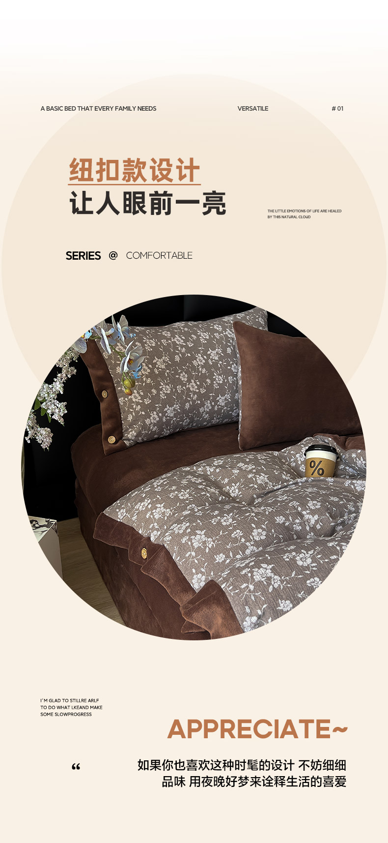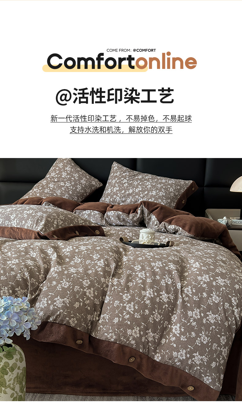 (总)吾诺家居 2025新款纽扣款牛奶绒四件套美丽绒四件套数码四件套,格调可可,宽条咖,毛衣棕,千鸟格蓝,绅品,织梦