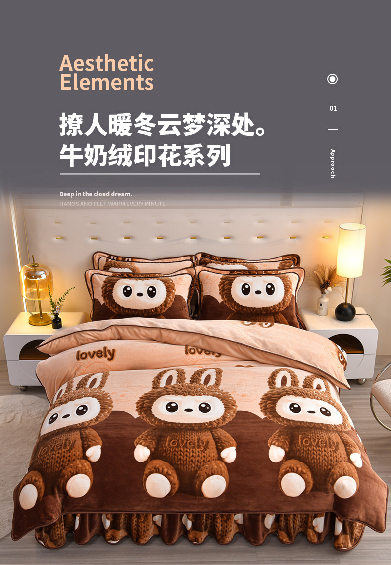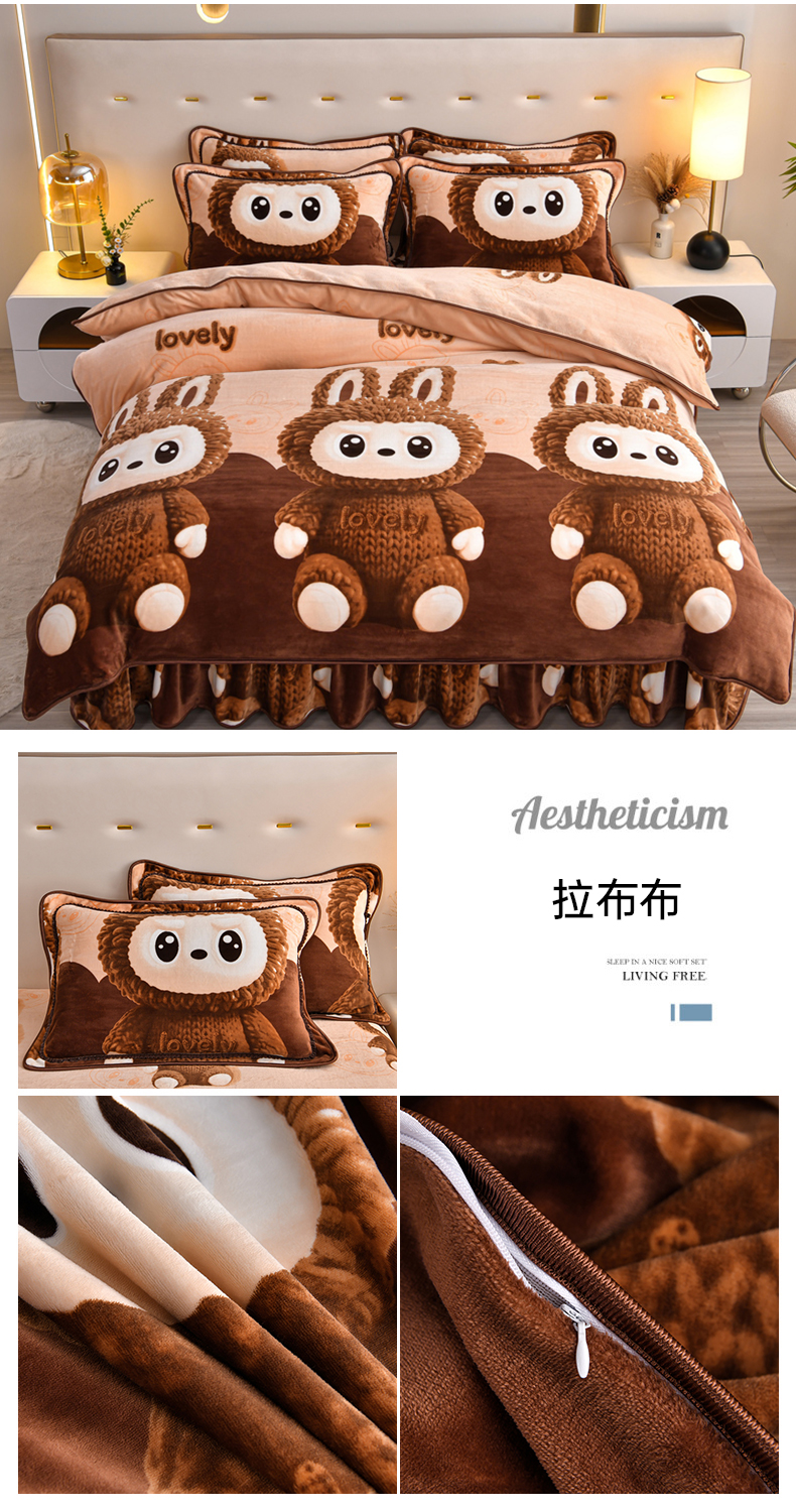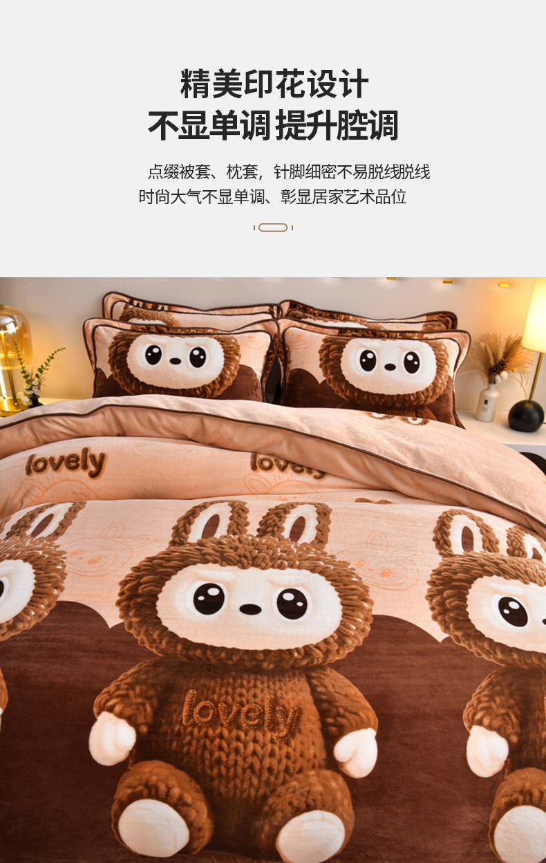商品名称:芯诗曼 2025直播高克重牛奶绒四件套法莱绒金貂貂狐保暖单被套 拉布布