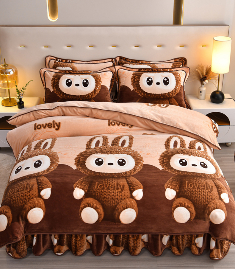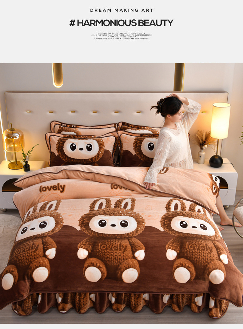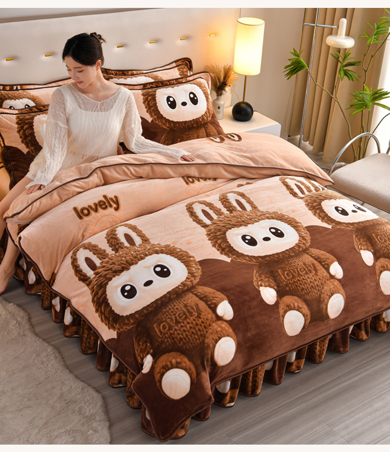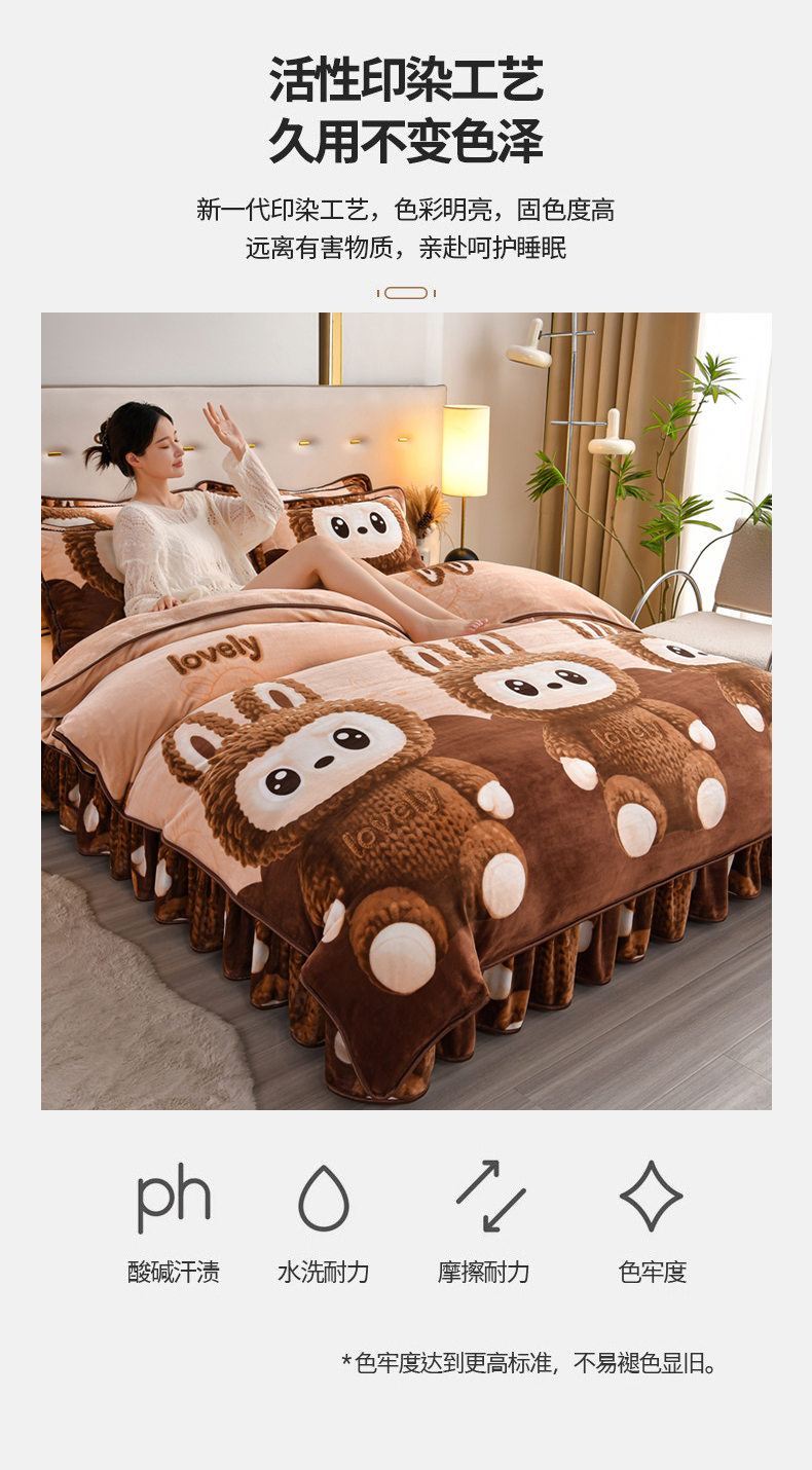 商品名称:芯诗曼 2025直播高克重牛奶绒四件套法莱绒金貂貂狐保暖单被套 拉布布
