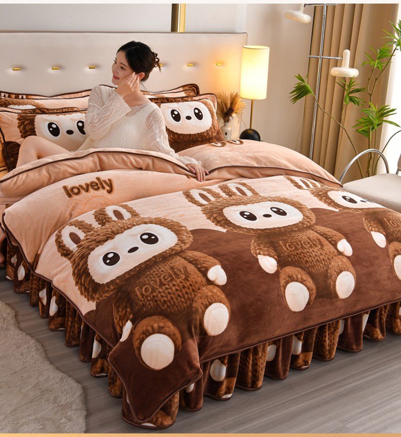 芯诗曼 2025直播高克重牛奶绒四件套法莱绒金貂貂狐保暖单被套 拉布布
