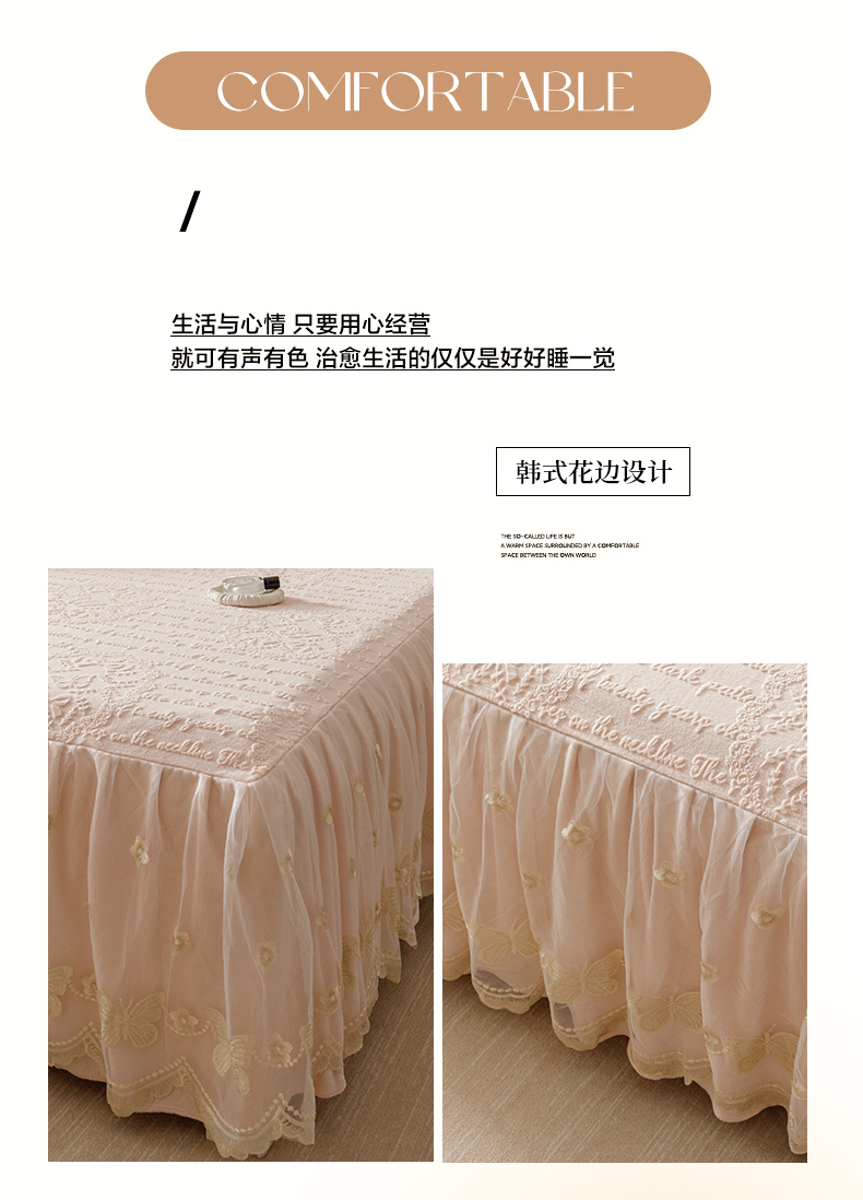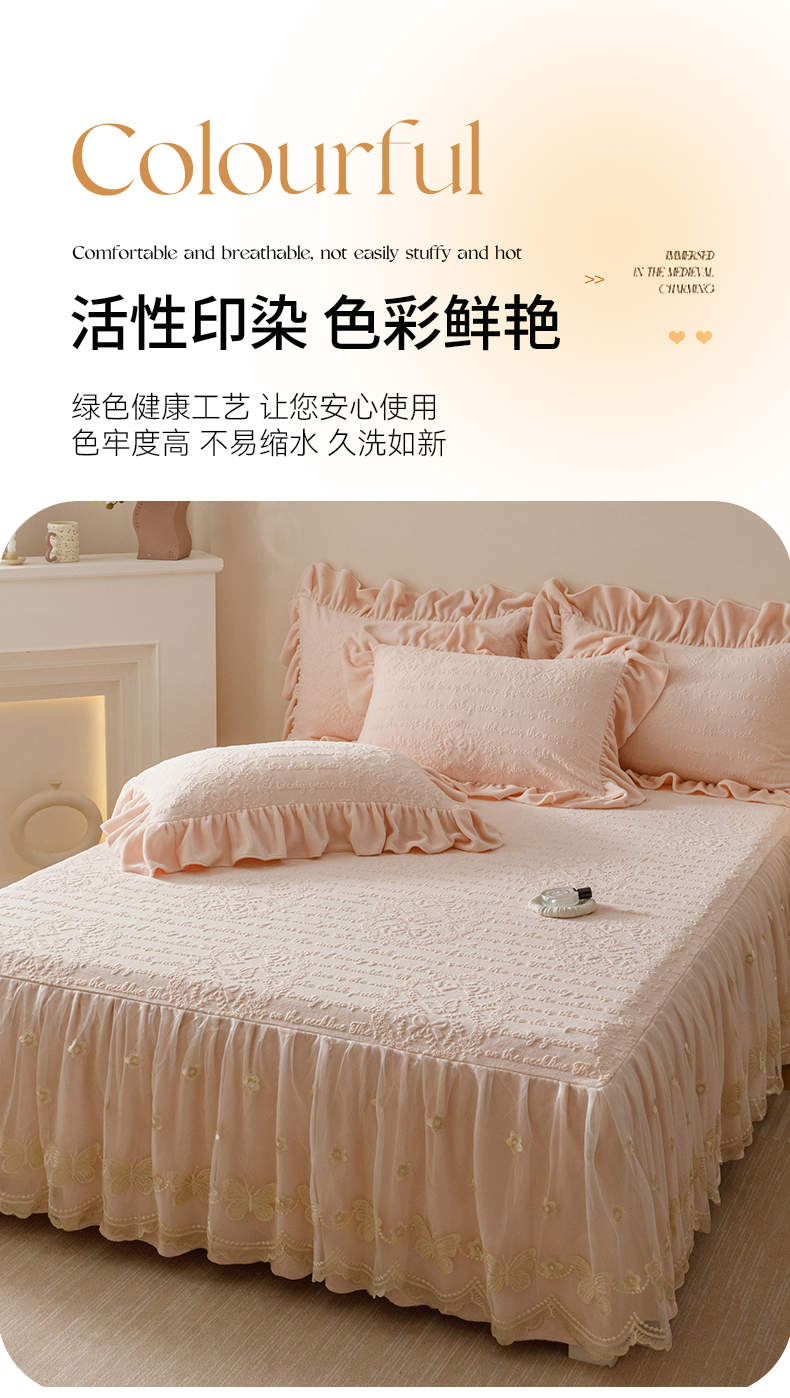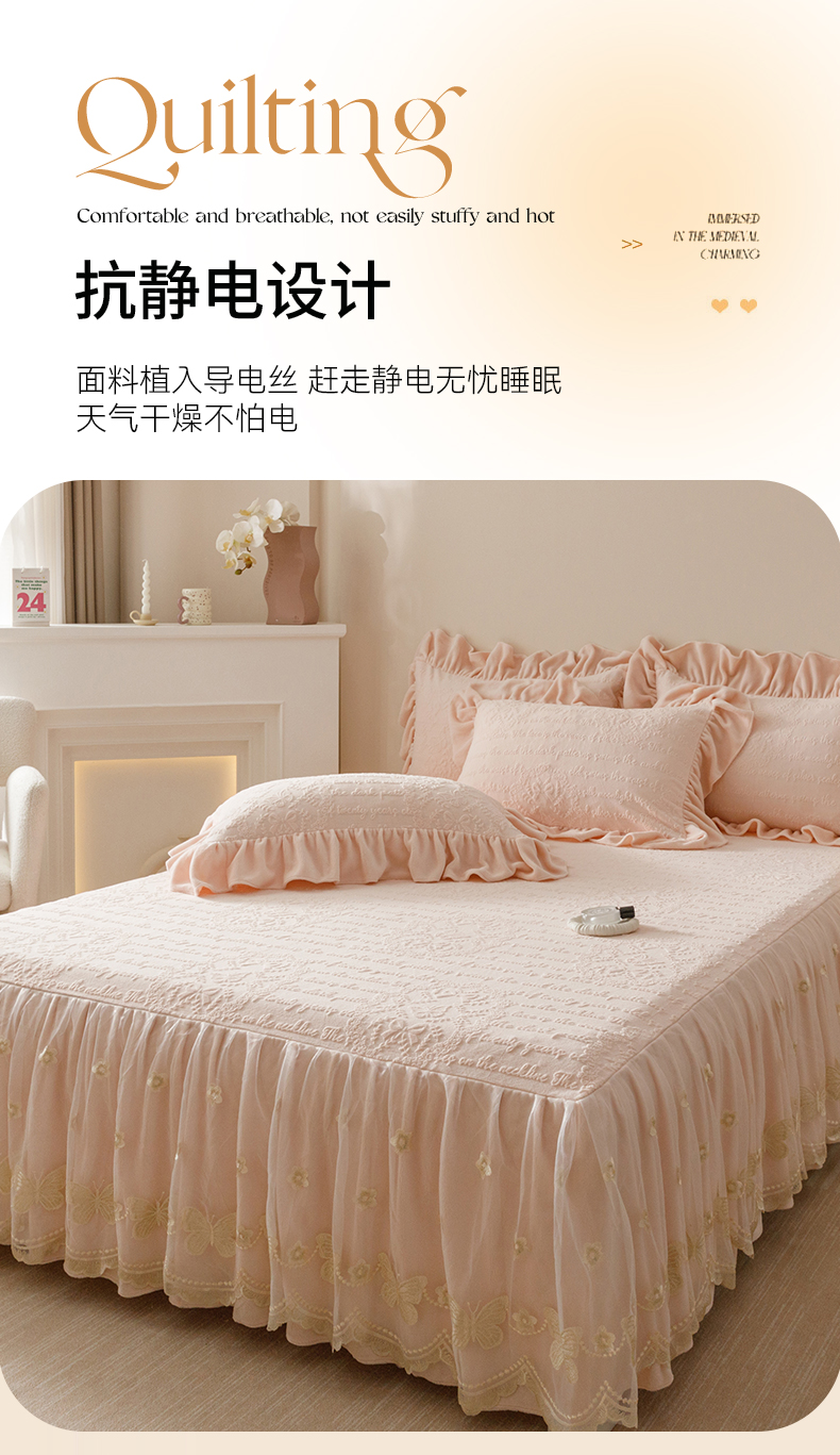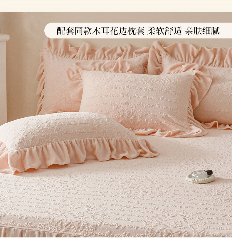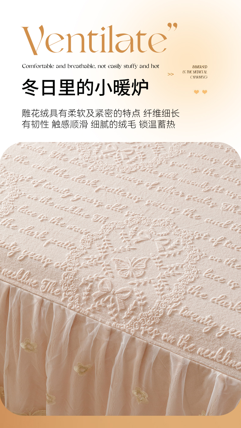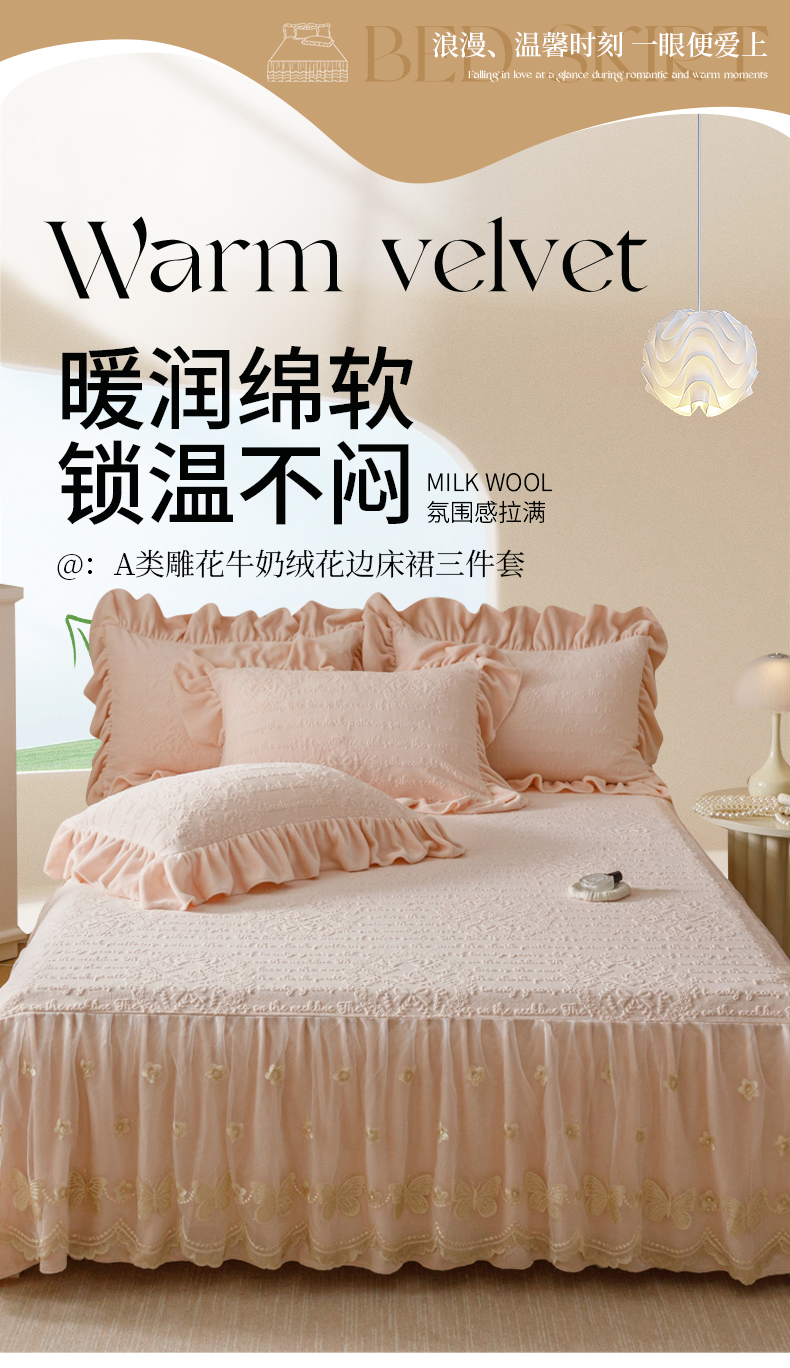 当前位置: 91家纺网 > 商品网购 > 床品套件 > 三件套 > (总)好儿喜家纺 2025新款雕花牛奶绒床裙款三件套-蝶韵