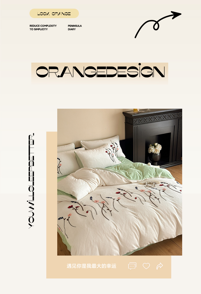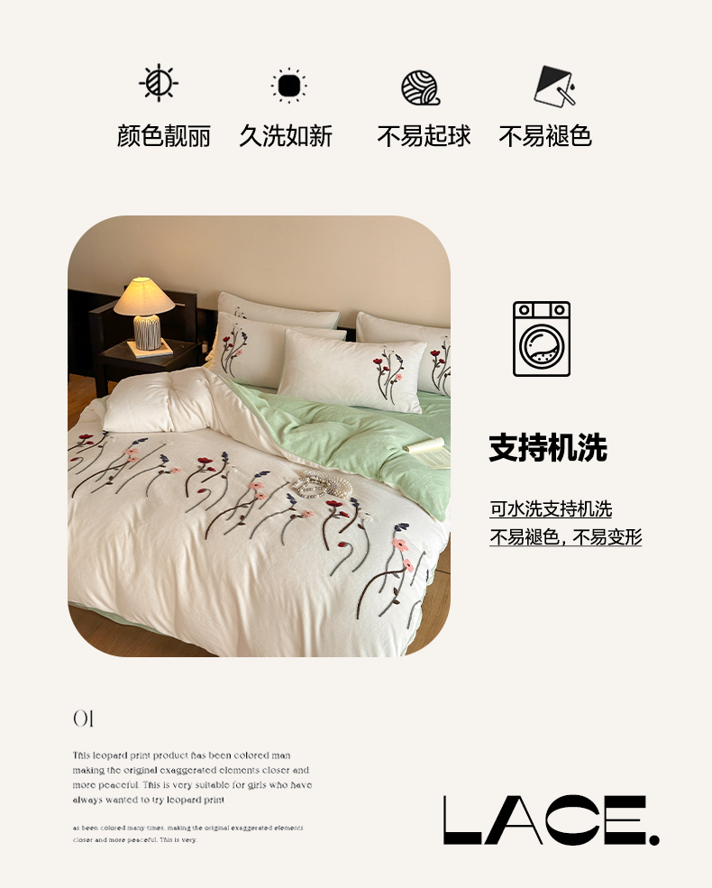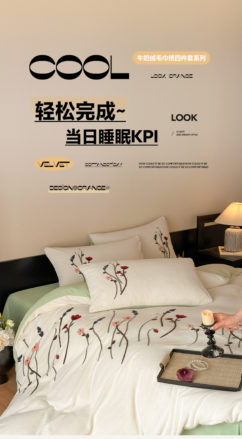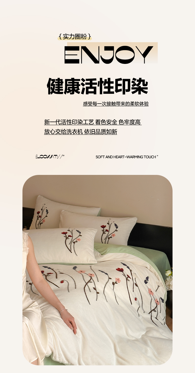 商品名称:如一 2025新款田园风毛巾绣牛奶绒四件套 幽兰-白绿