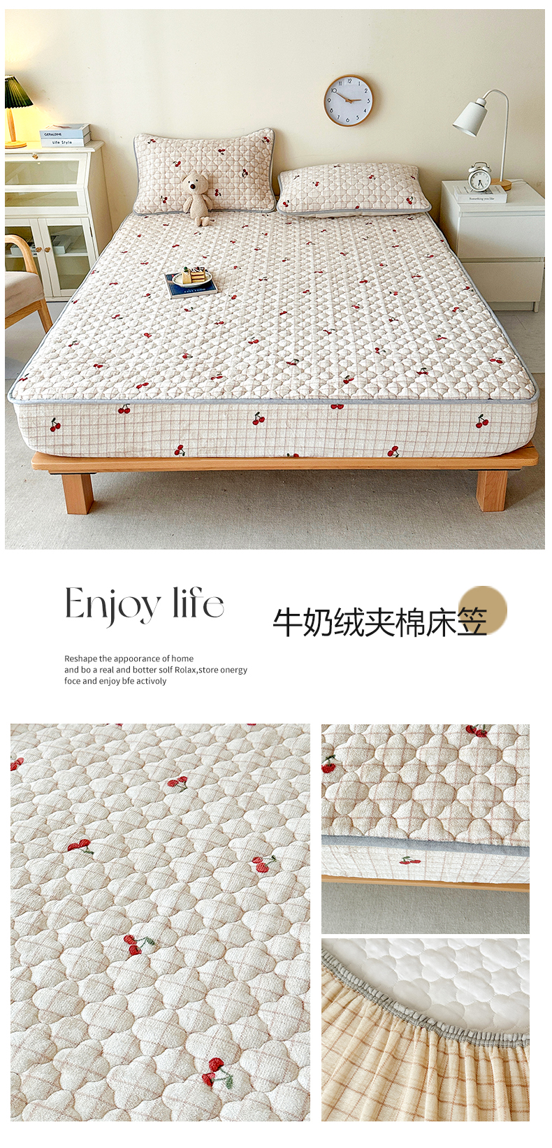 铭成家纺 2025新款牛奶绒夹棉保暖床笠 绅士熊
