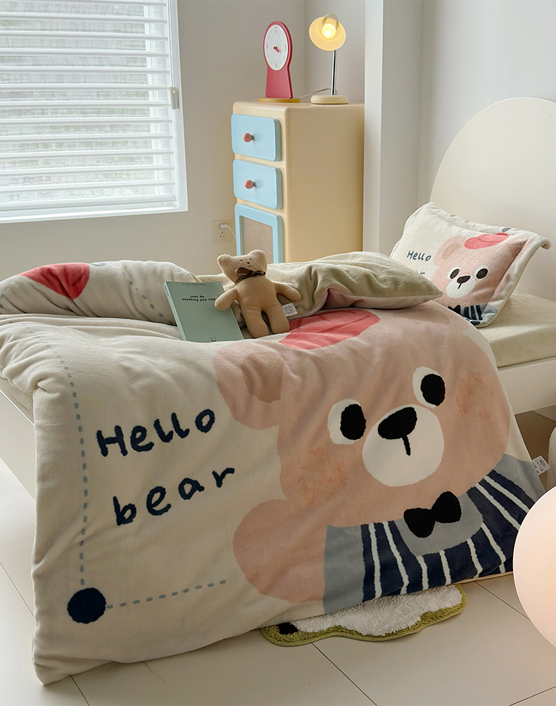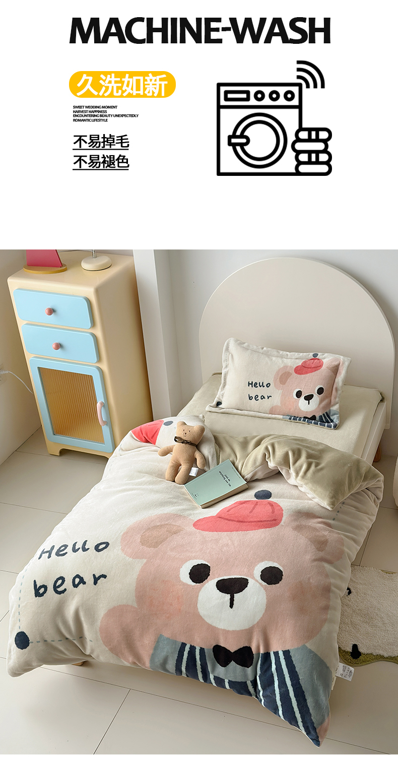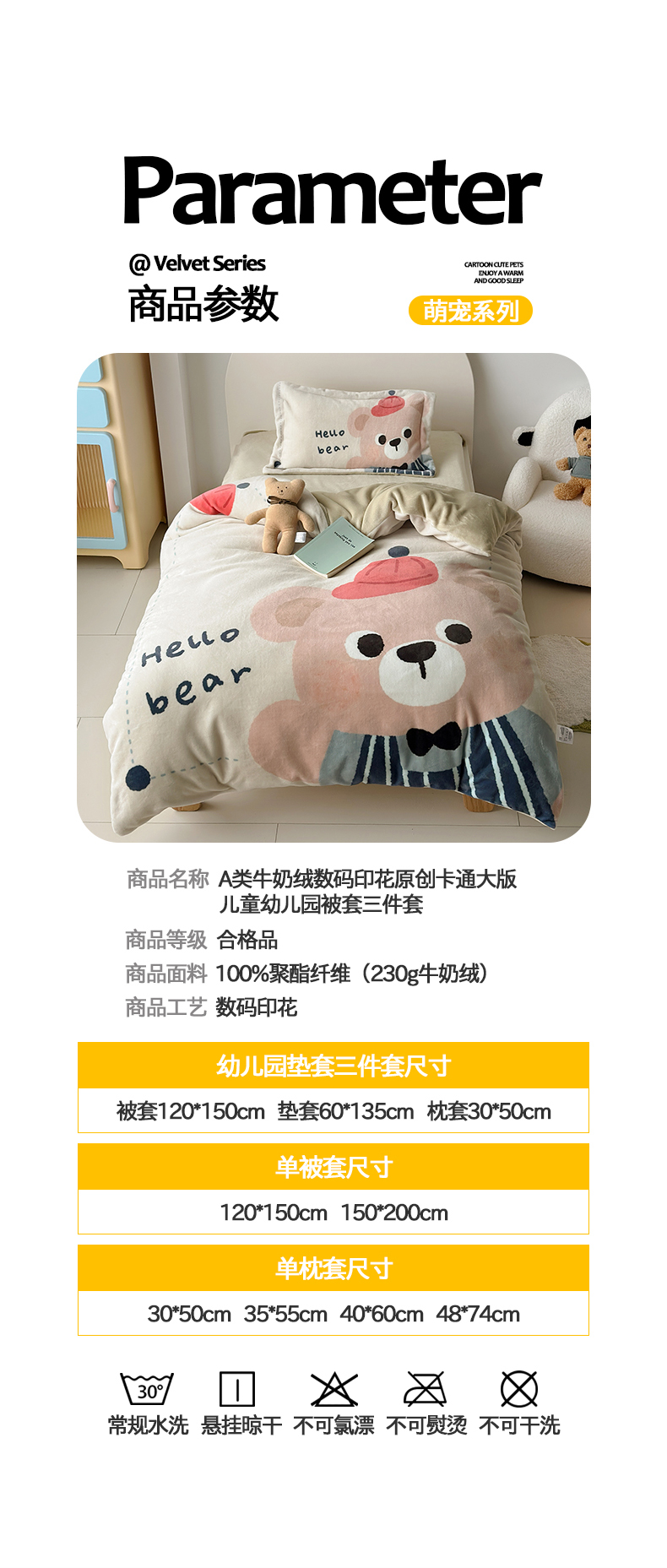 当前位置: 91家纺网 > 商品网购 > 床品套件 > 三件套 > 荷马之梦 2025新款A类牛奶绒数码印花原创卡通大版儿童幼儿园被套三件套-萌宠系列 小熊卢卡