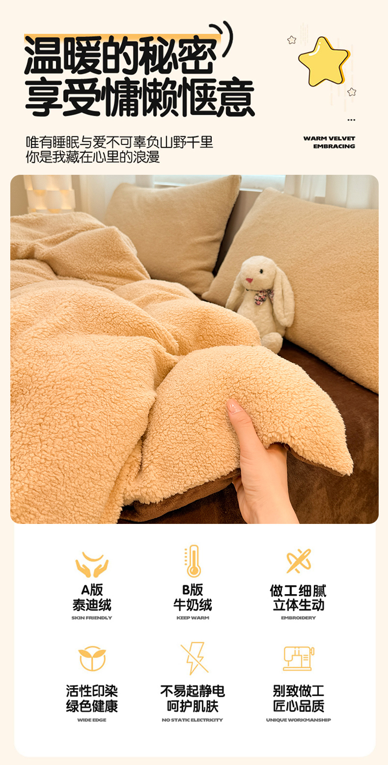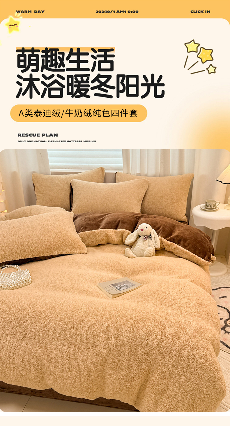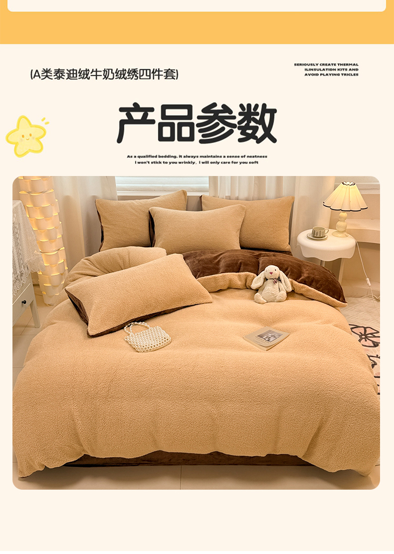 当前位置: 91家纺网 > 商品网购 > 床品套件 > 四件套 > 牛奶绒四件套 > 眠博士 2025新款A类泰迪绒牛奶绒纯色四件套 泰迪绒-安妮咖