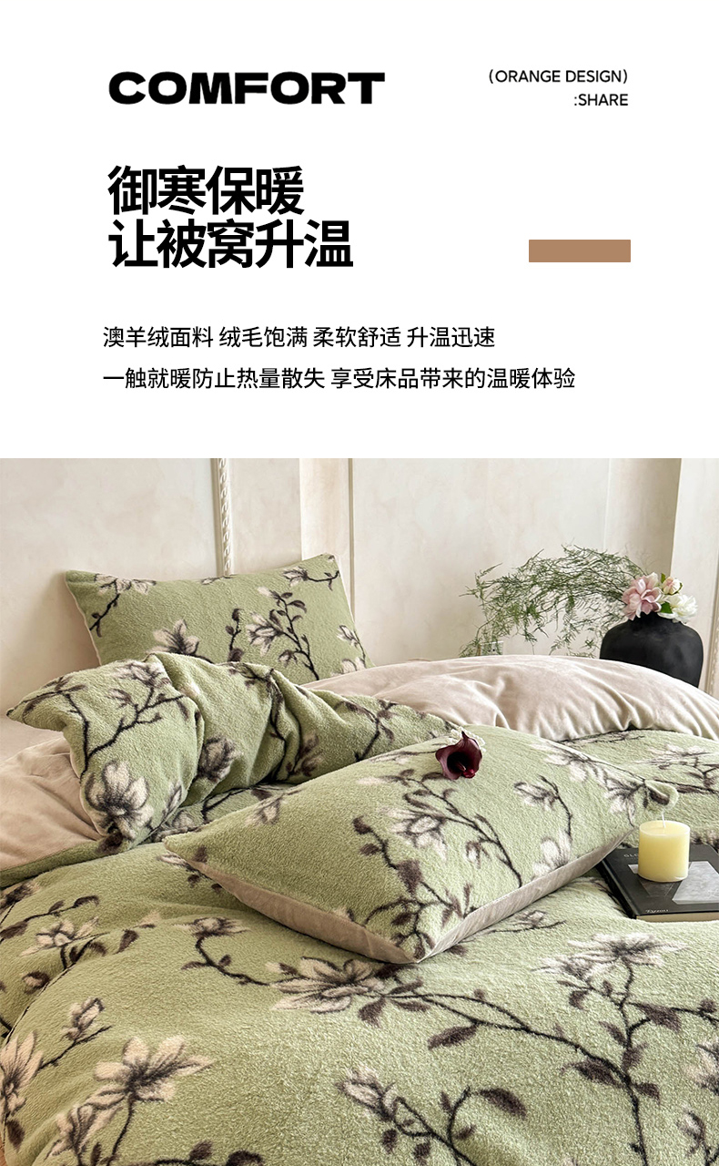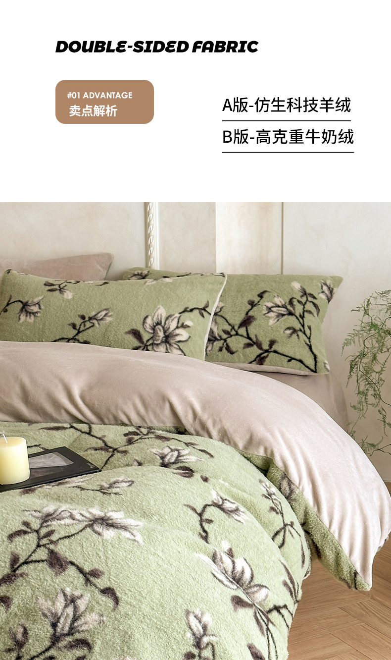 商品名称:宜代光年 2025新款澳羊绒保暖四件套 青枝玉兰