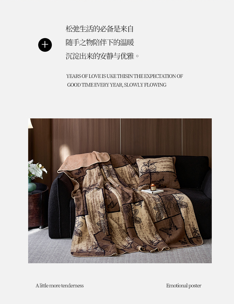 宜代光年 2025新款奥羊绒复合毛毯子毛毯 绒毯 复古蝶花
