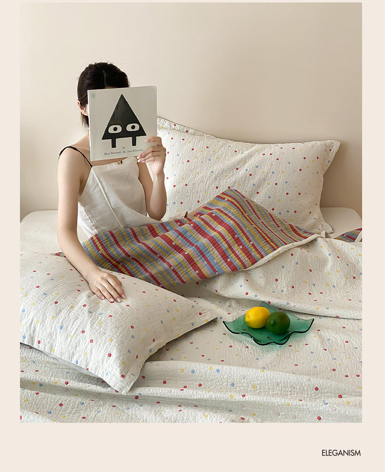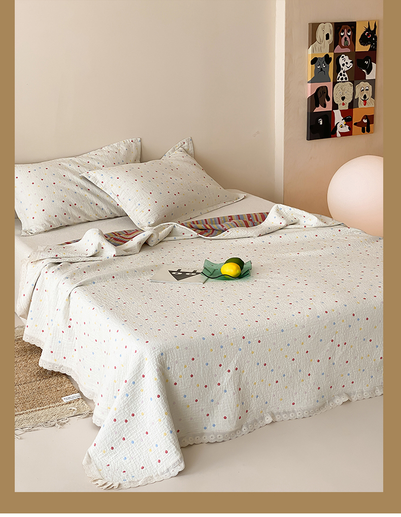 商品名称:麻依 2025新款安心棉四层纱布床盖三件套 彩虹点点