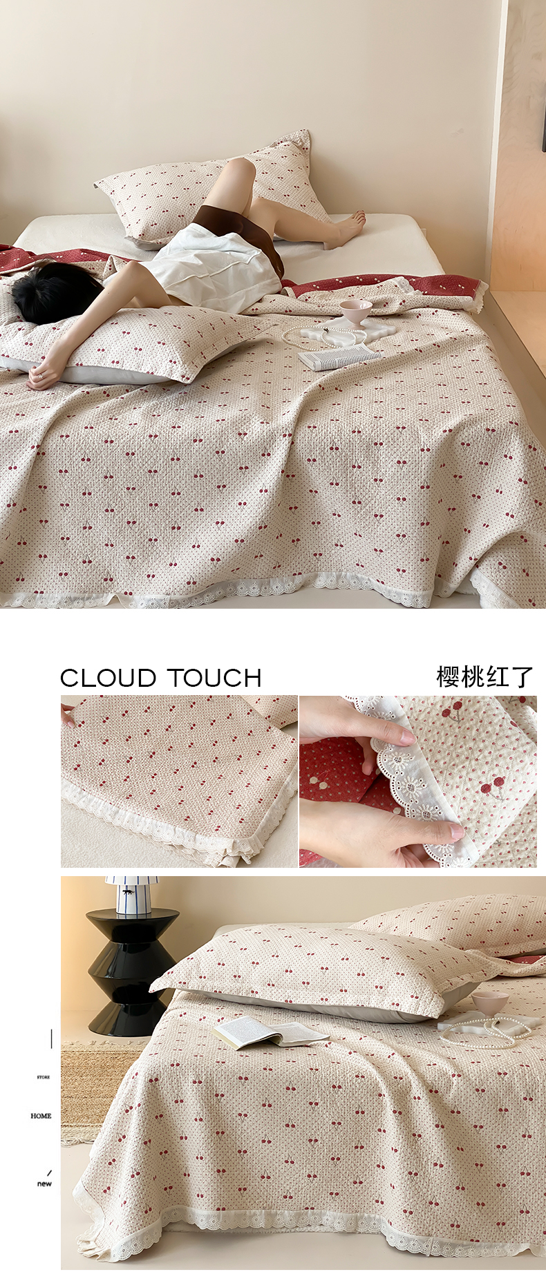(总)麻依 2025新款韩国清新全棉纱布床盖三件套,憨憨熊,彩色南瓜,车厘子,两颗草莓,奶盖KT,奶油波点-灰,奶油彩点,水蓝KT,水墨花,丝带,桃心-米白,小猫鱼