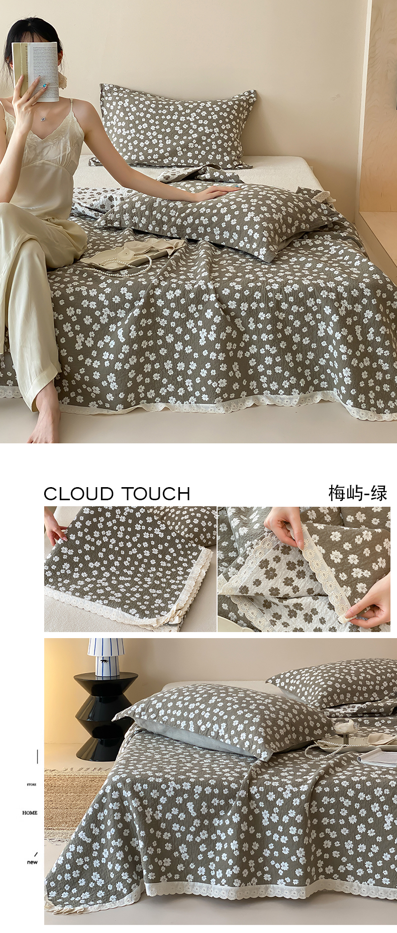 商品名称:麻依 2025新款安心棉四层纱布床盖三件套 木栖