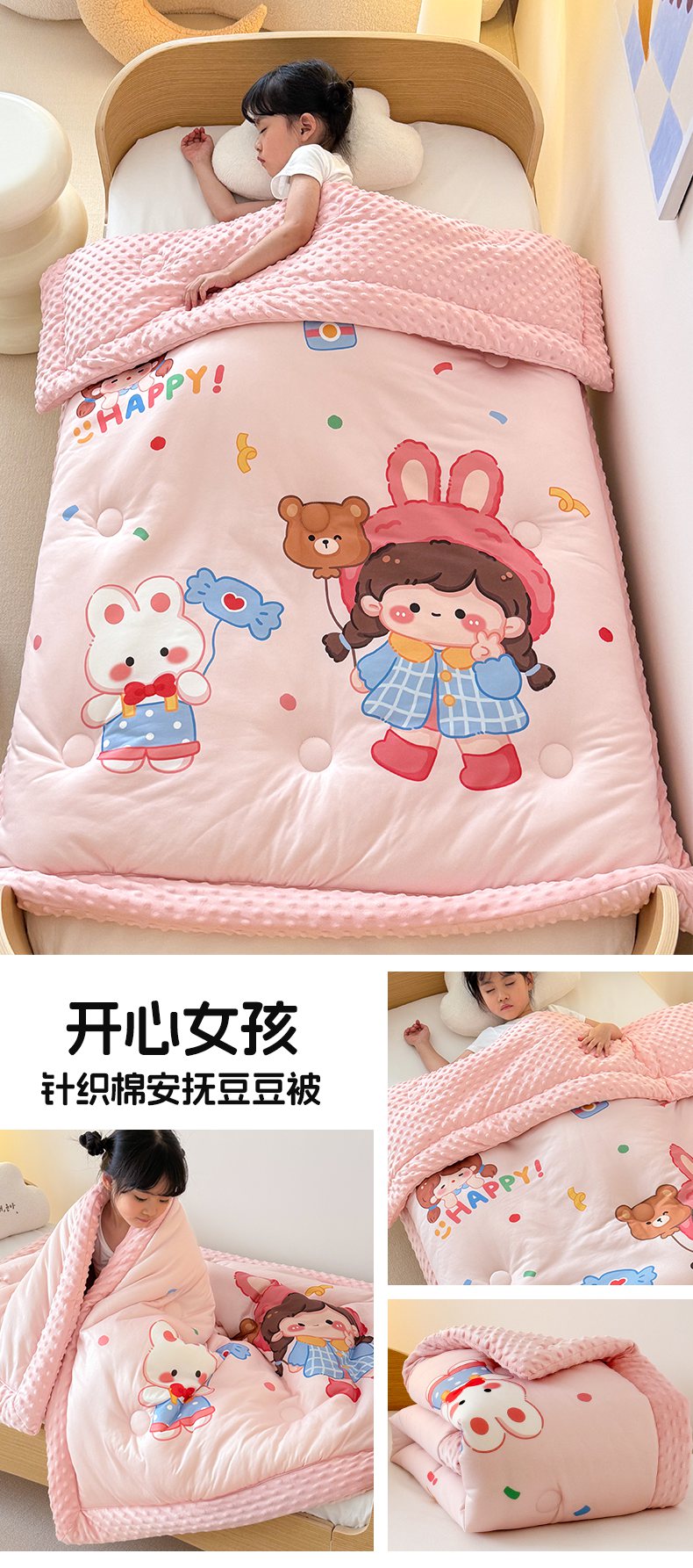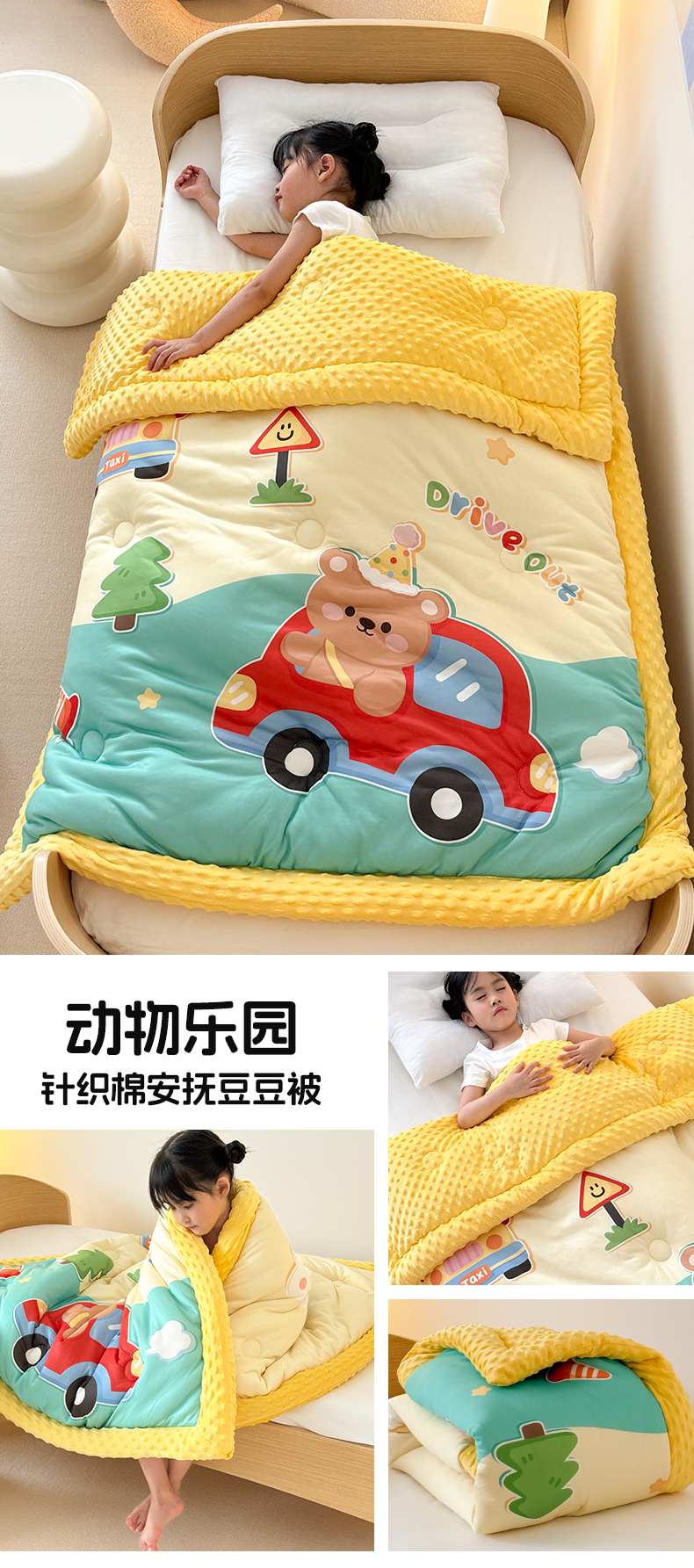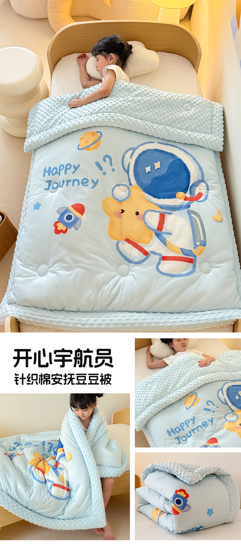 (总)嗨生活 2025新款针织棉豆豆被儿童豆豆被幼儿园豆豆被被子被芯,动物乐园,开心女孩,开心宇航员,恐龙宝宝,恐龙派对,蓝色挖掘,萌小兔,熊猫之家,雪地狗,叠拍图