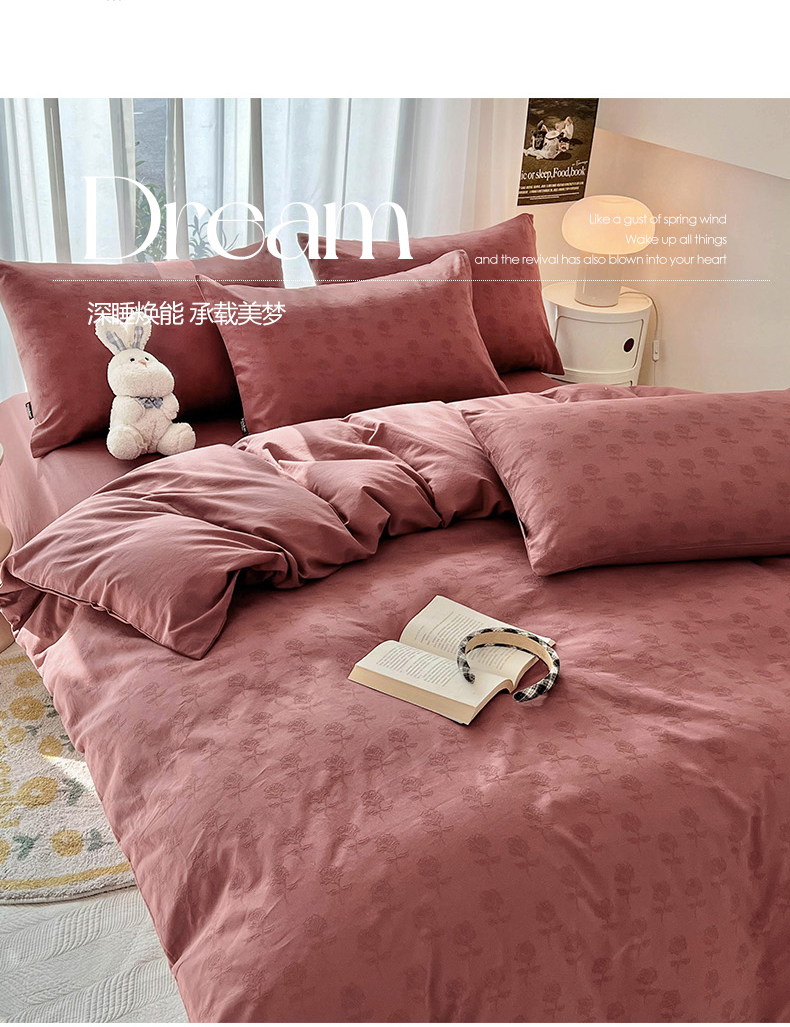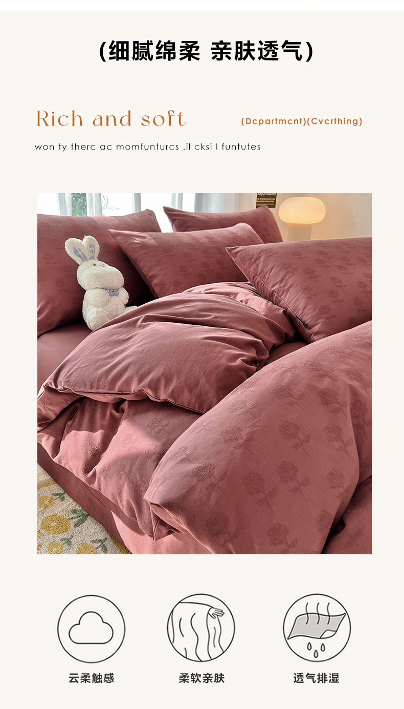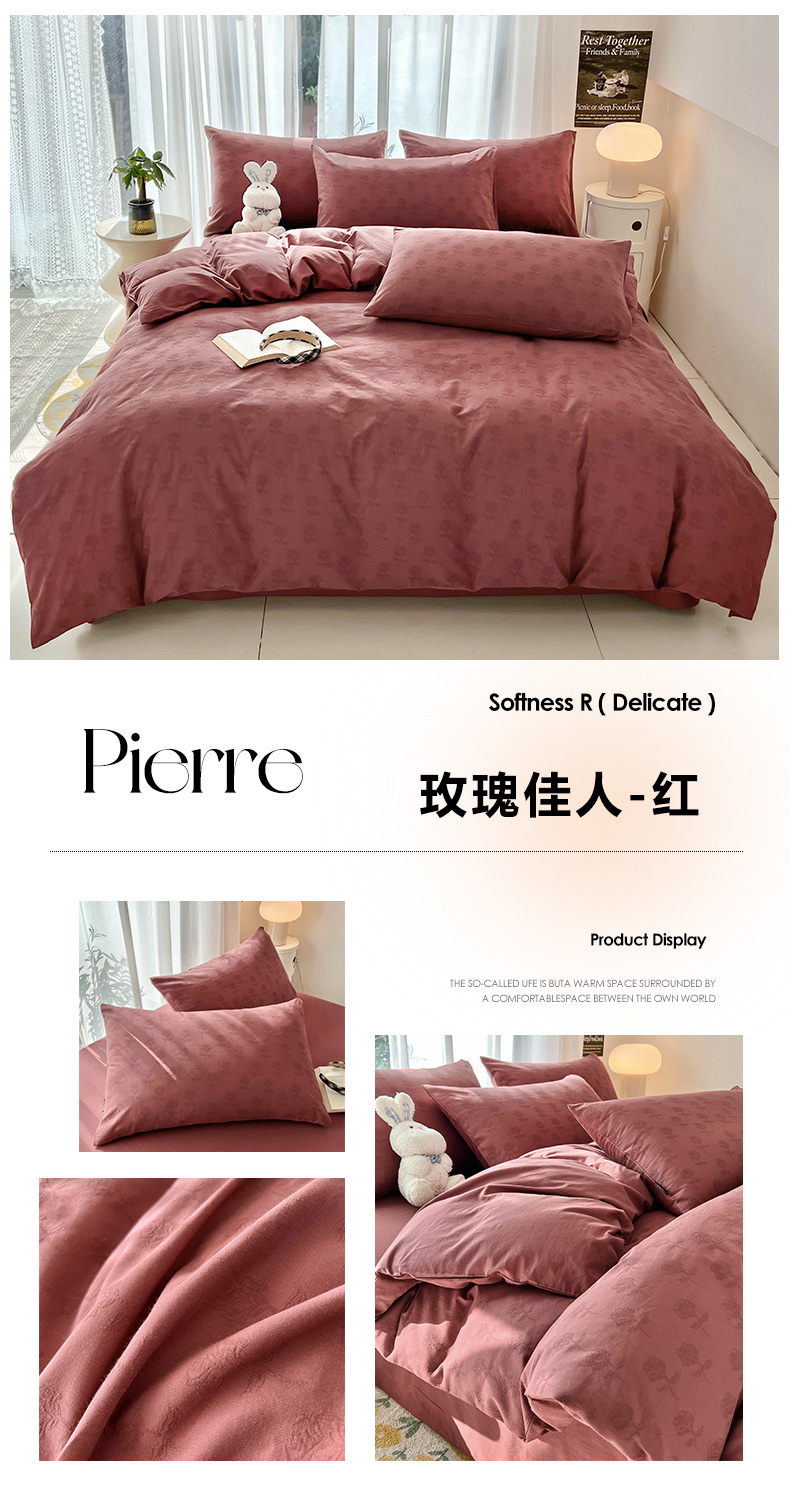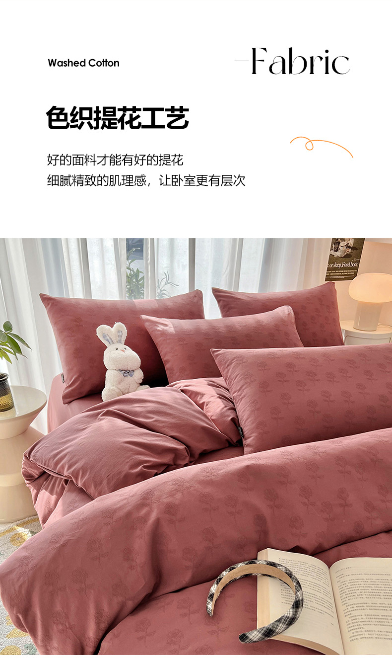 当前位置: 91家纺网 > 商品网购 > 床品套件 > 四件套 > 其它四件套 > 宜代光年 2025新款60s水洗棉提花系列四件套-第一批-场景二 玫瑰佳人-红