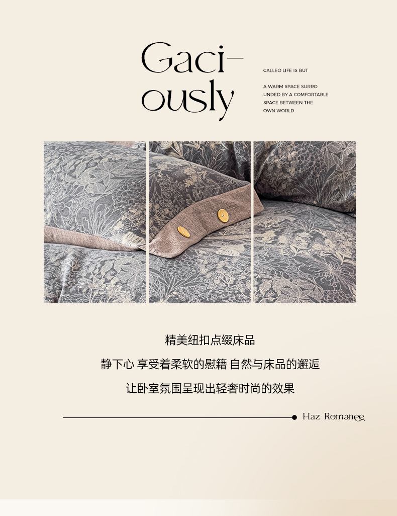 当前位置: 91家纺网 > 商品网购 > 床品套件 > 四件套 > 其它四件套 > 丝芙妮家居(原乐视家纺) 2025新款原麻纽扣款四件套 曼丽·纽扣款