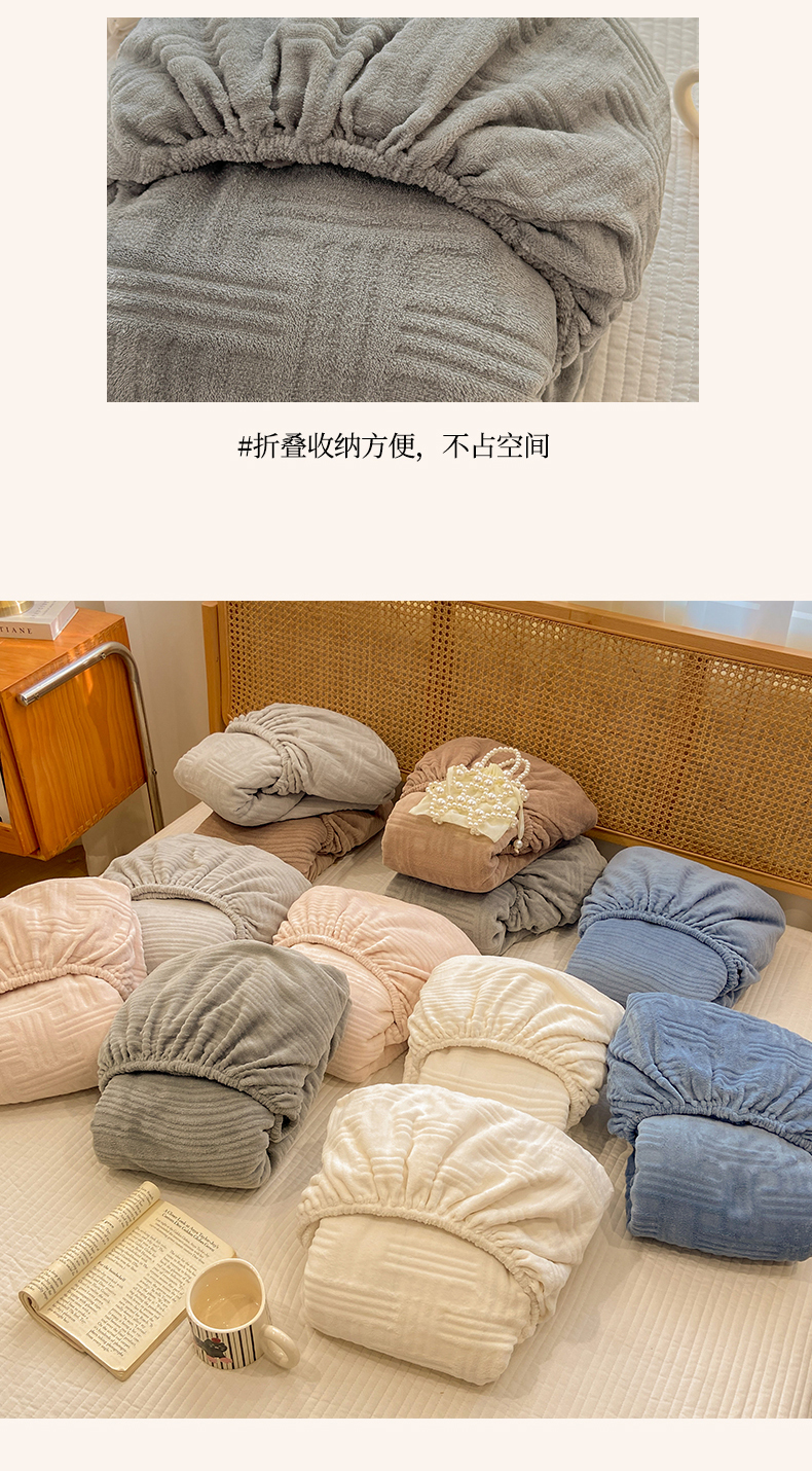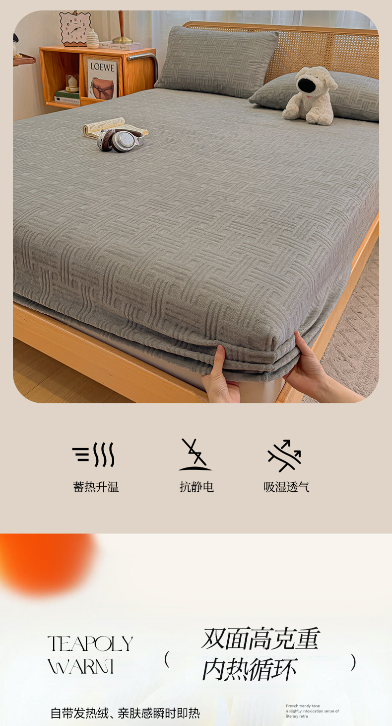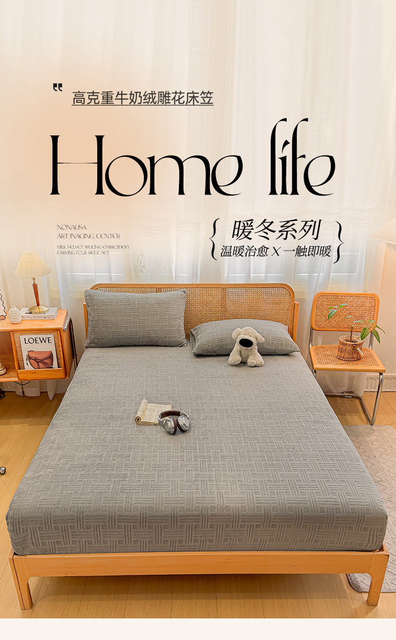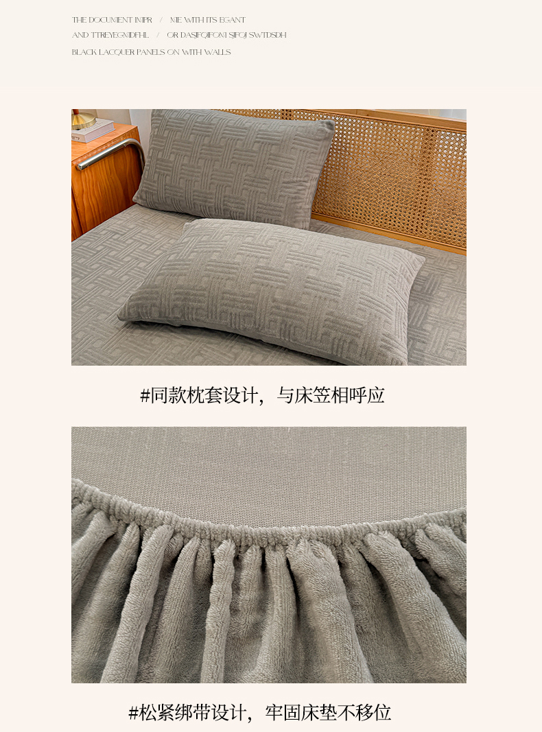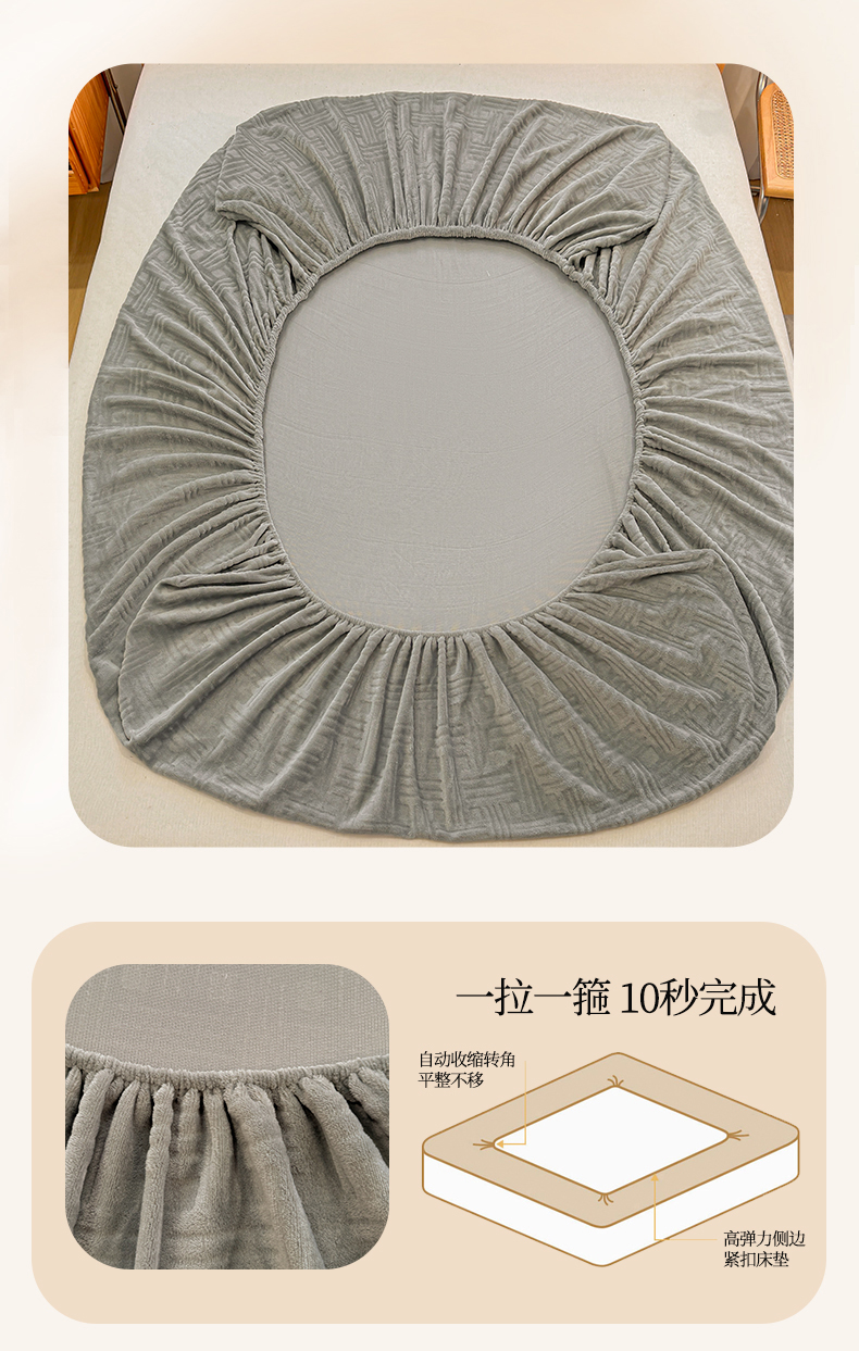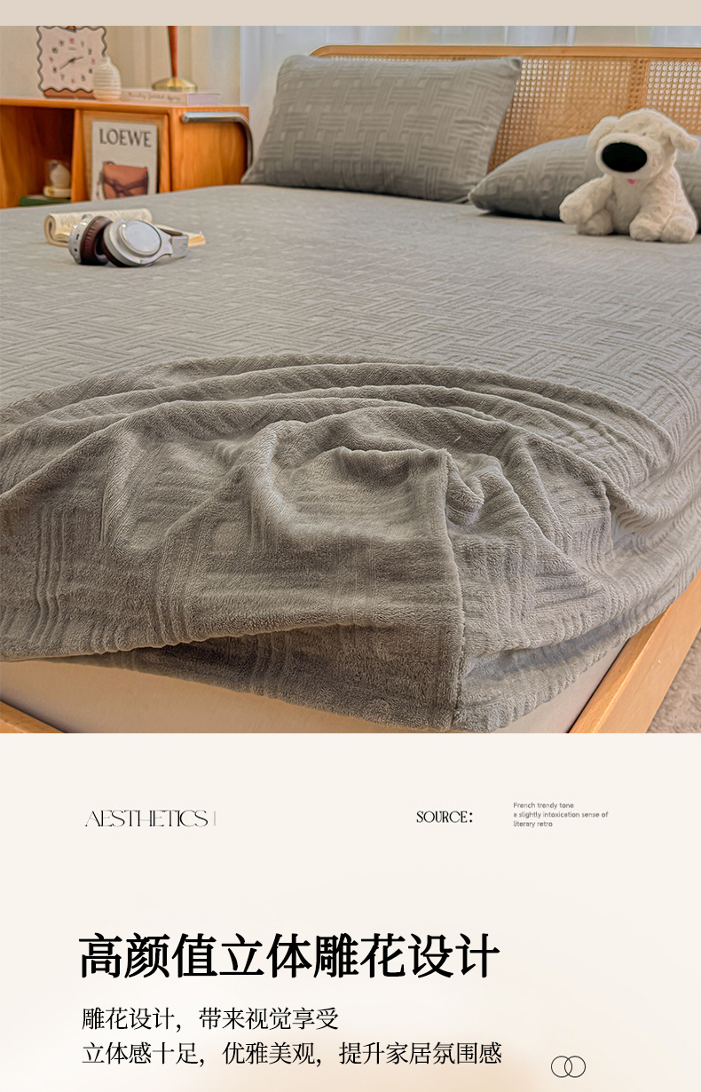 • 91家纺网 家纺一手货源 找家纺 灰鲸 2025新款纯色简约高克重雕花牛奶绒单品床笠 糖果格-绅士灰
