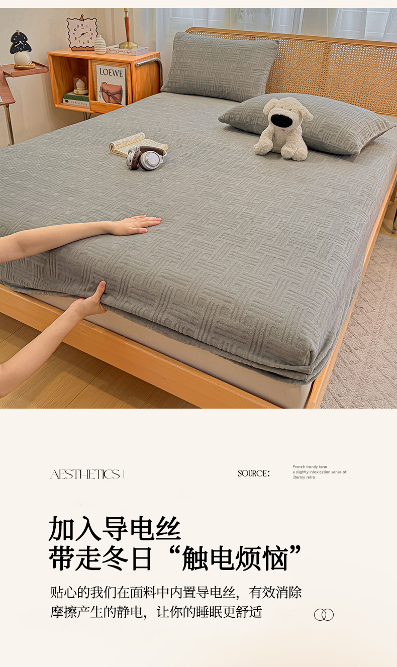 当前位置: 91家纺网 > 商品网购 > 床上用品 > 床笠 > 灰鲸 2025新款纯色简约高克重雕花牛奶绒单品床笠 糖果格-绅士灰