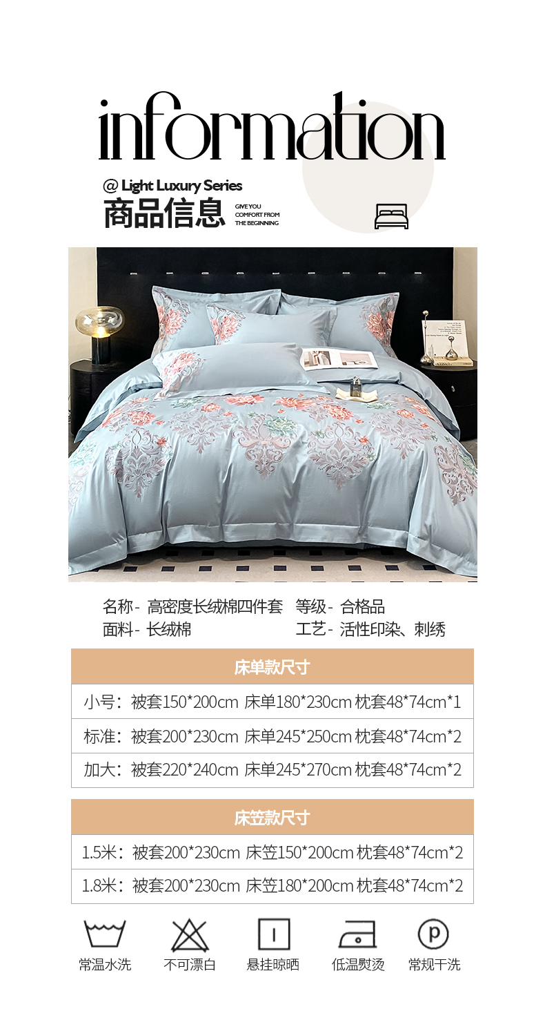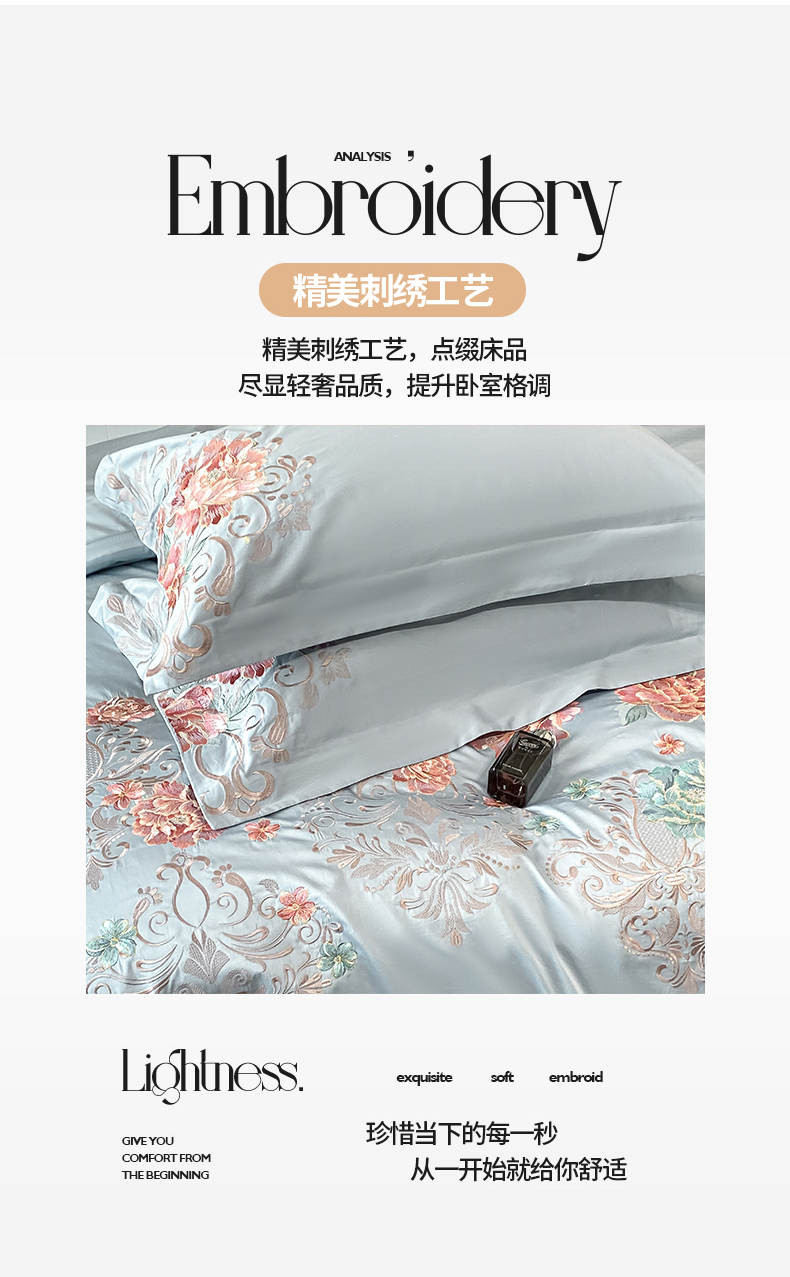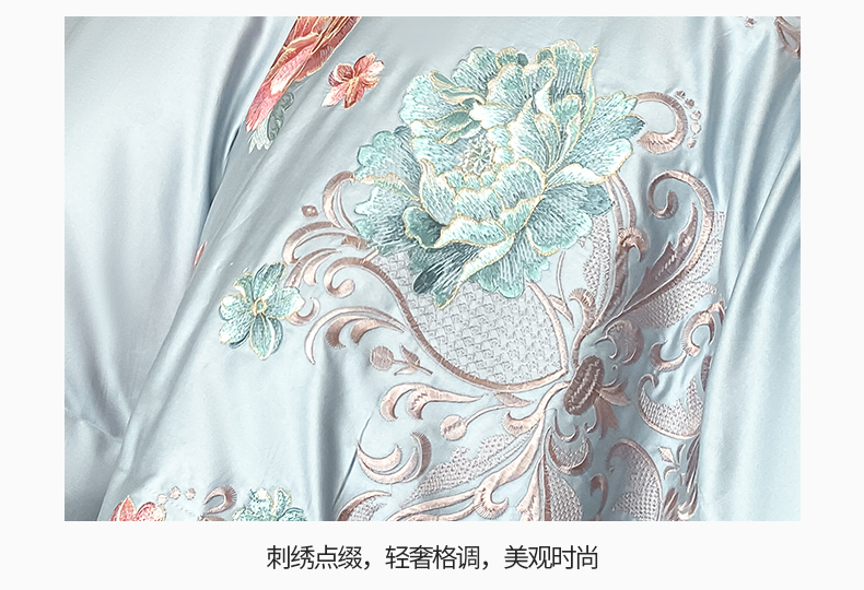 商品名称:置顶家纺 2025新款13372全棉拼接刺绣四件套-盛世花悦 盛世花悦-天蓝