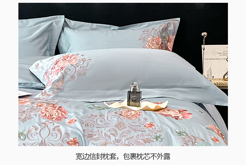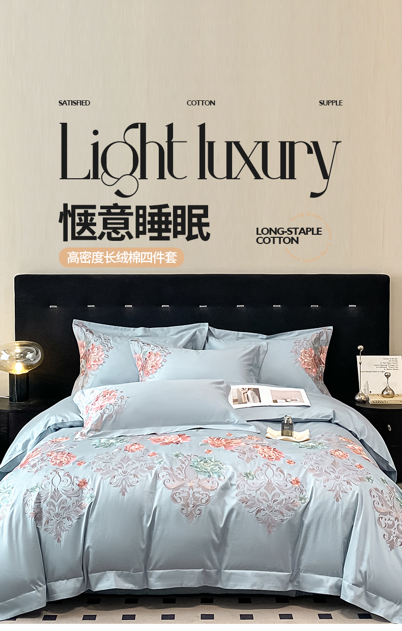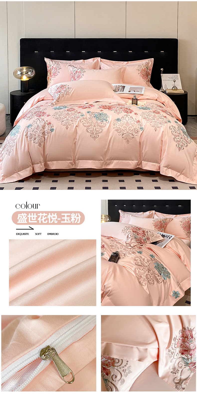 (总)置顶家纺 2026新款亲肤棉玫瑰刺绣提花卡罗拉系列四件套,卡罗拉-碧蓝,卡罗拉-魅粉,卡罗拉-浅香槟,卡罗拉-天空蓝