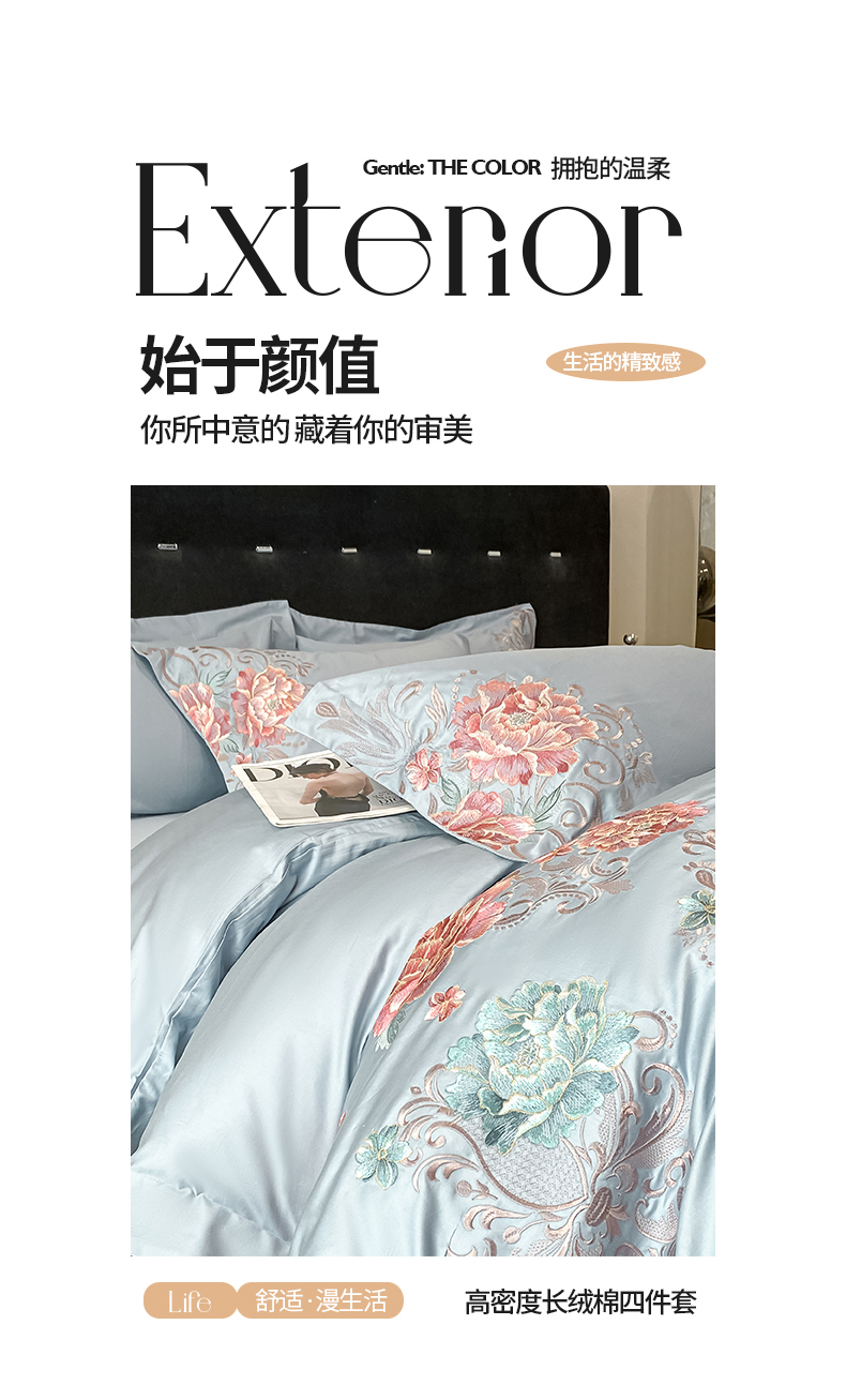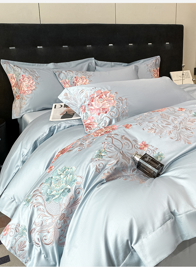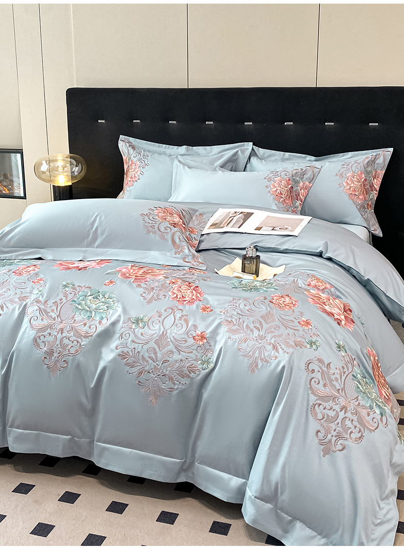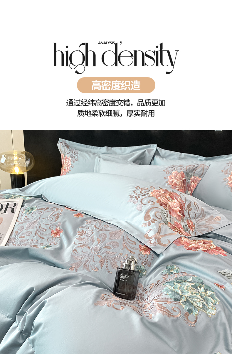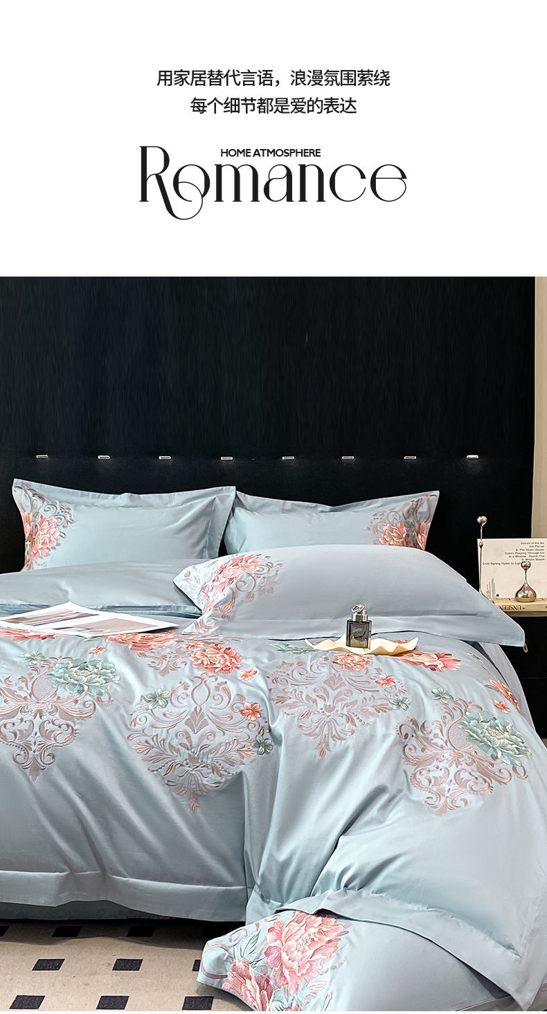 置顶家纺 2025新款13372全棉拼接刺绣四件套-盛世花悦 盛世花悦-天蓝