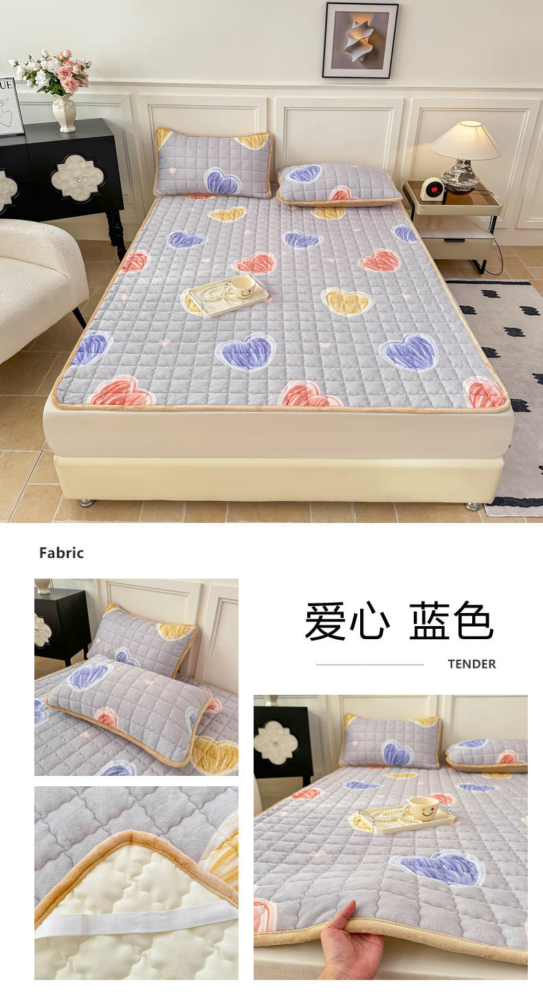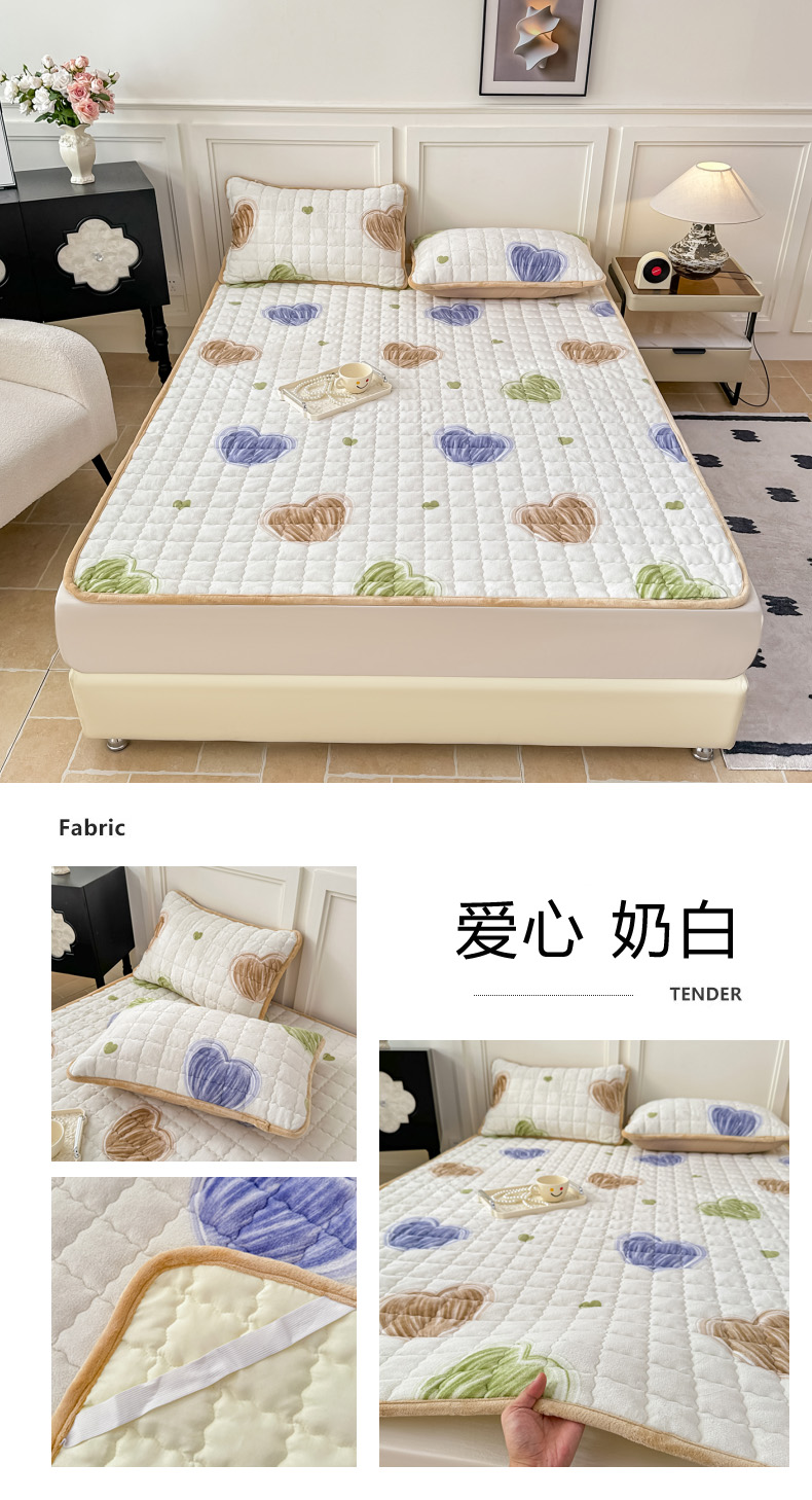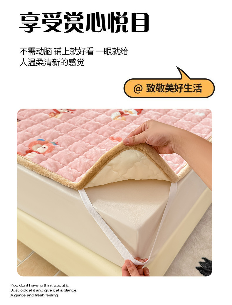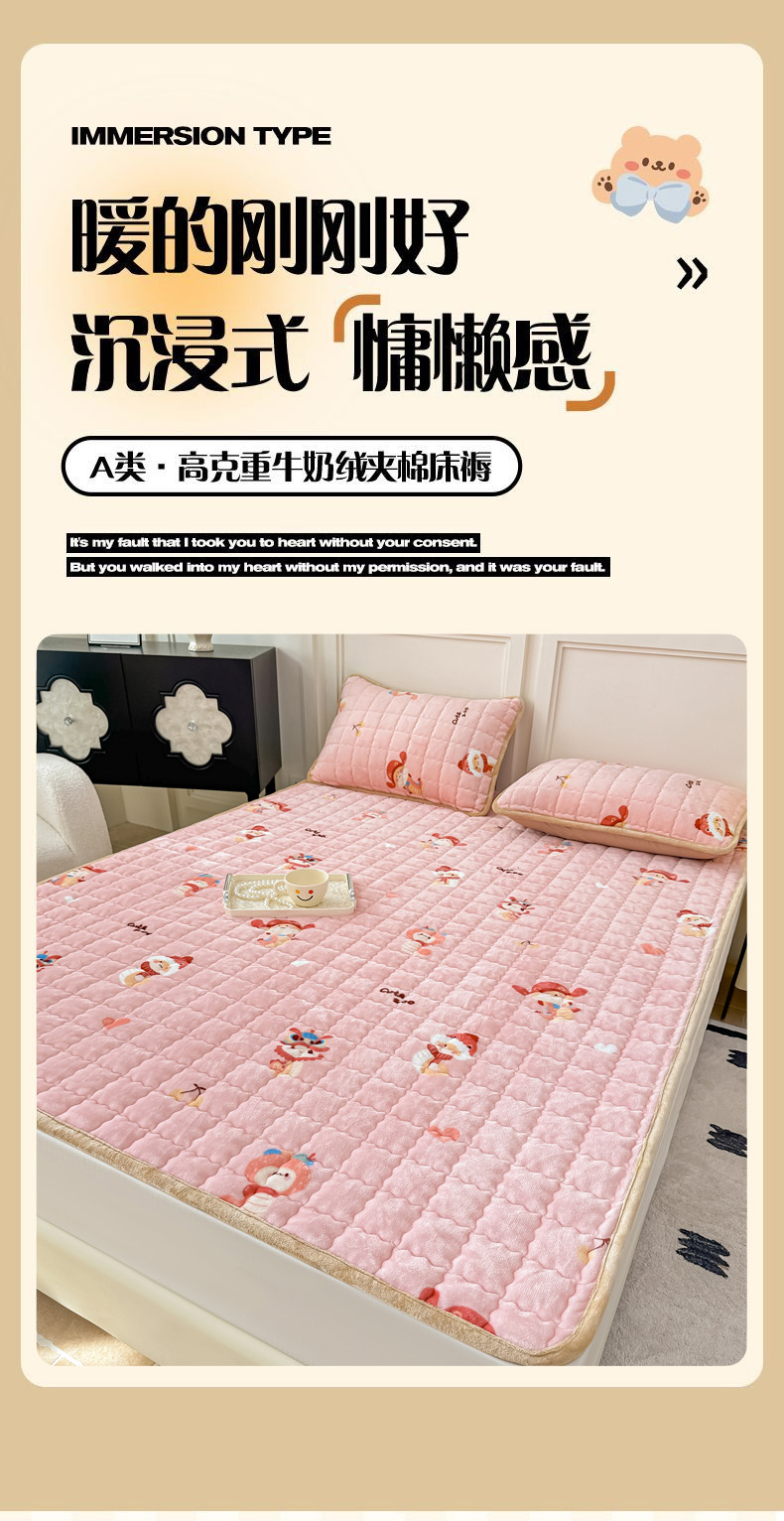 (总)棉森家纺 2025新款亲肤舒适高克重牛奶绒夹棉床褥床垫垫子,爱相随,爱心蓝色,爱心奶白,动物园,豆绿,灰色,玫瑰兔,西瓜红