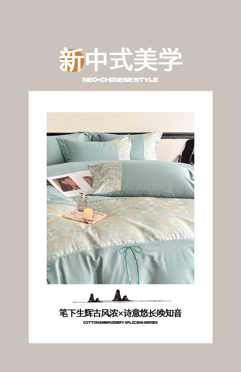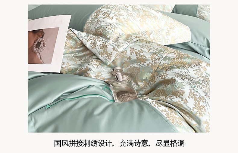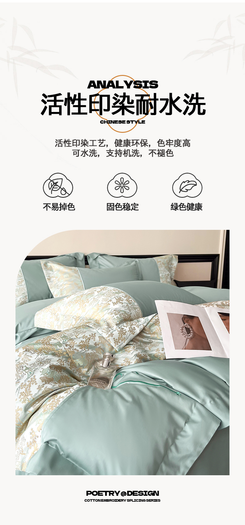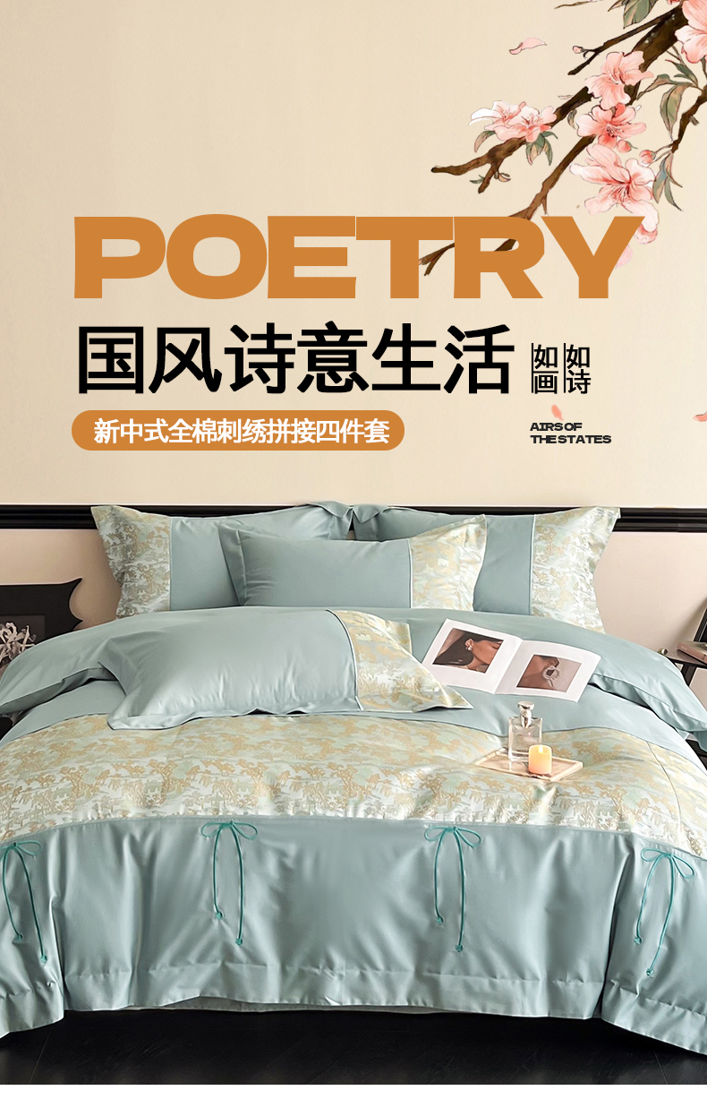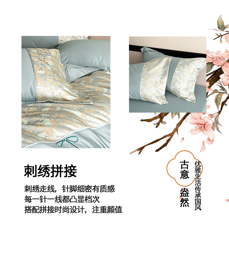 当前位置: 91家纺网 > 商品网购 > 床品套件 > 四件套 > 全棉普通四件套 > 置顶家纺 2025新款国色天香新中式全棉刺绣拼接四件套 烟雨江南-月影蓝