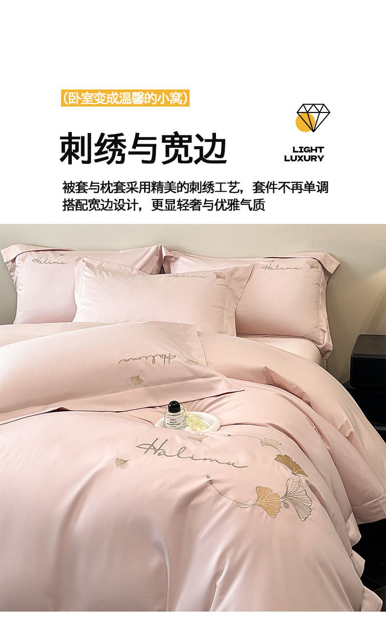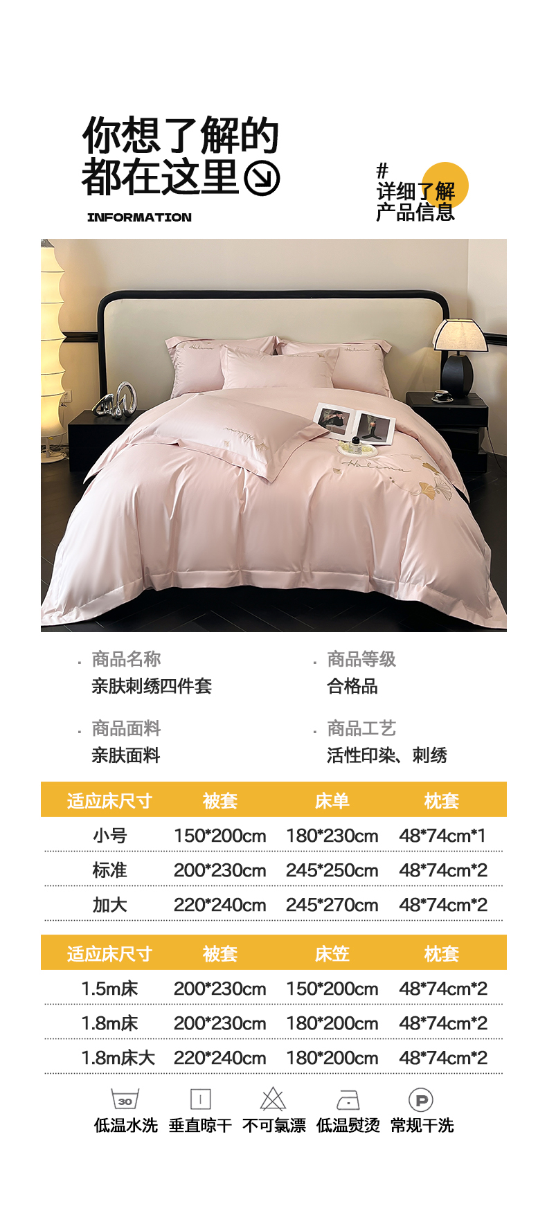 当前位置: 91家纺网 > 商品网购 > 床品套件 > 四件套 > 全棉普通四件套 > 置顶家纺 2025新款亲肤刺绣四件套-杏运 杏运-粉玉