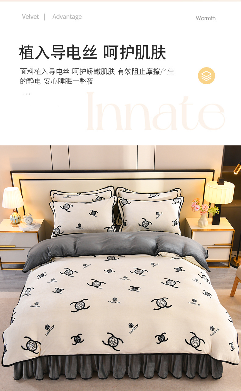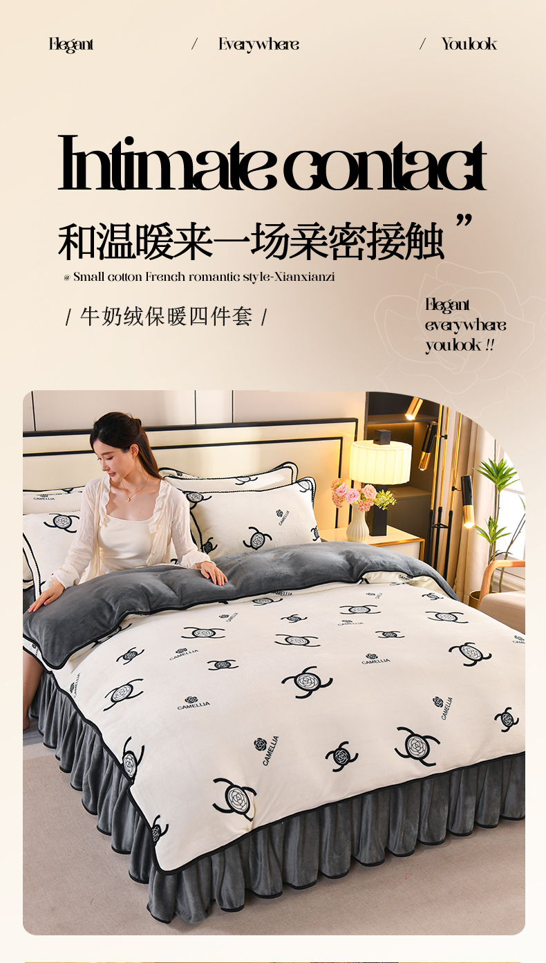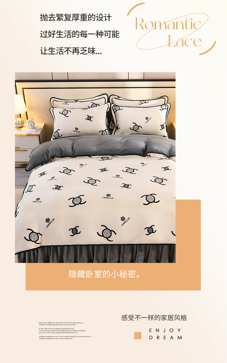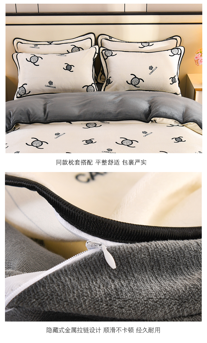 商品名称:2025新款高克重8斤金貂绒牛奶绒四件套 山茶花